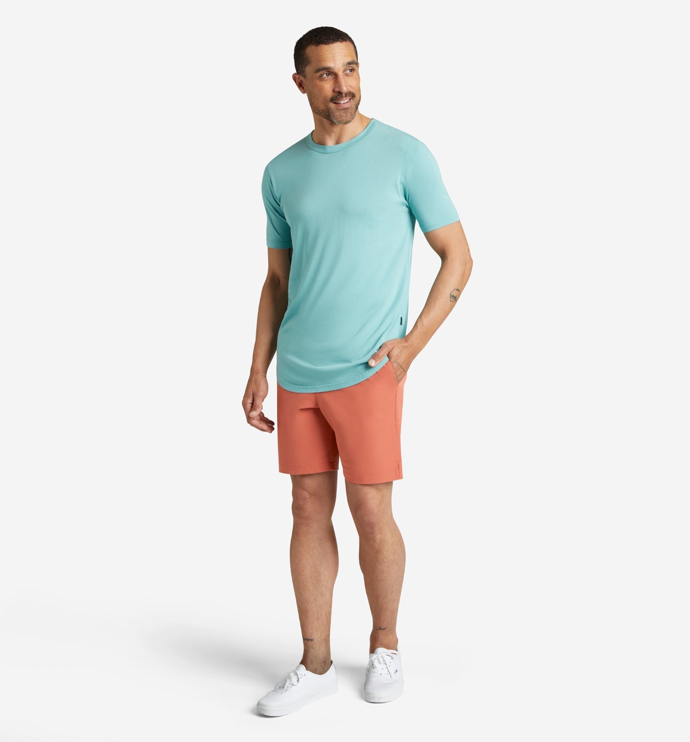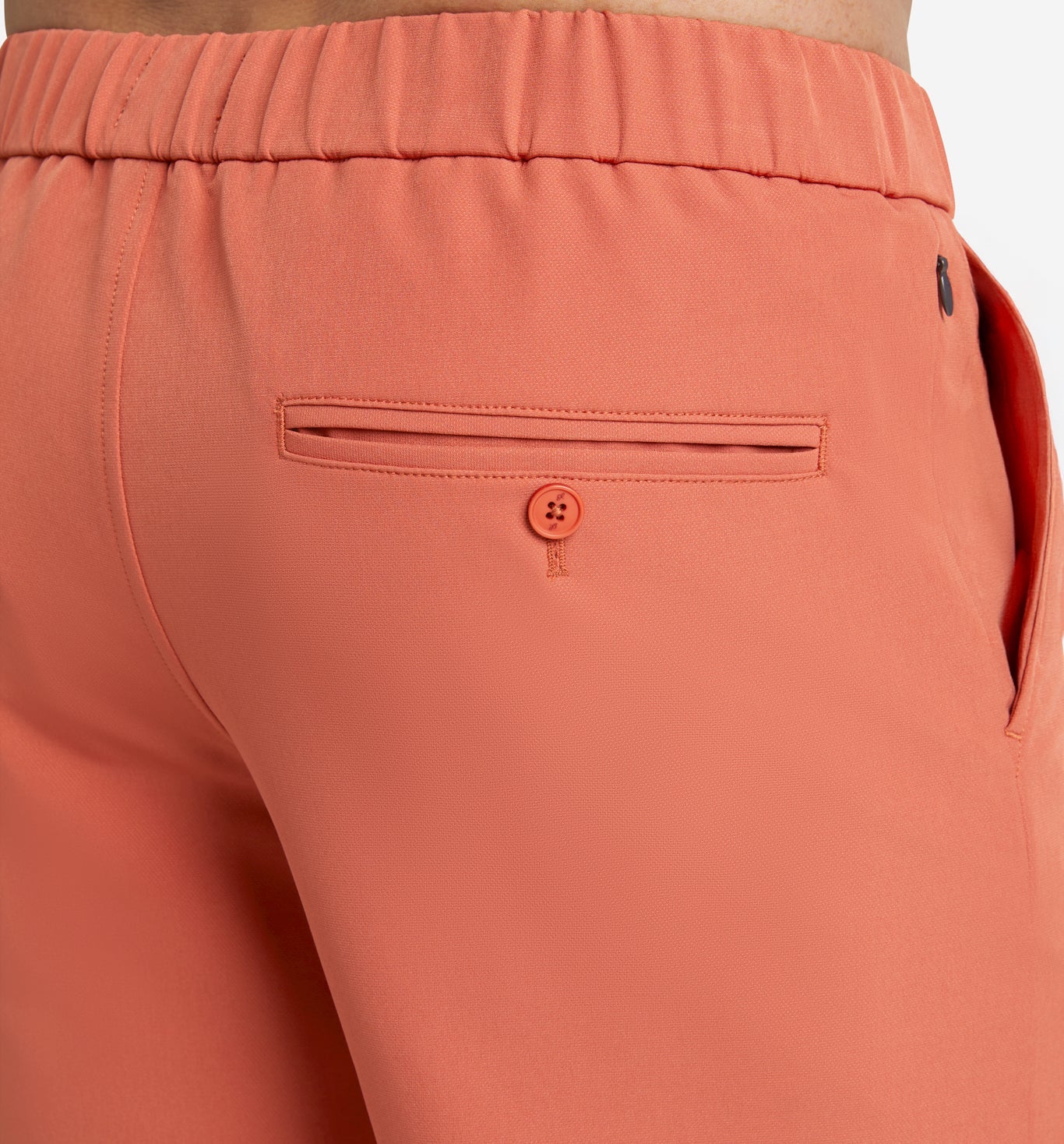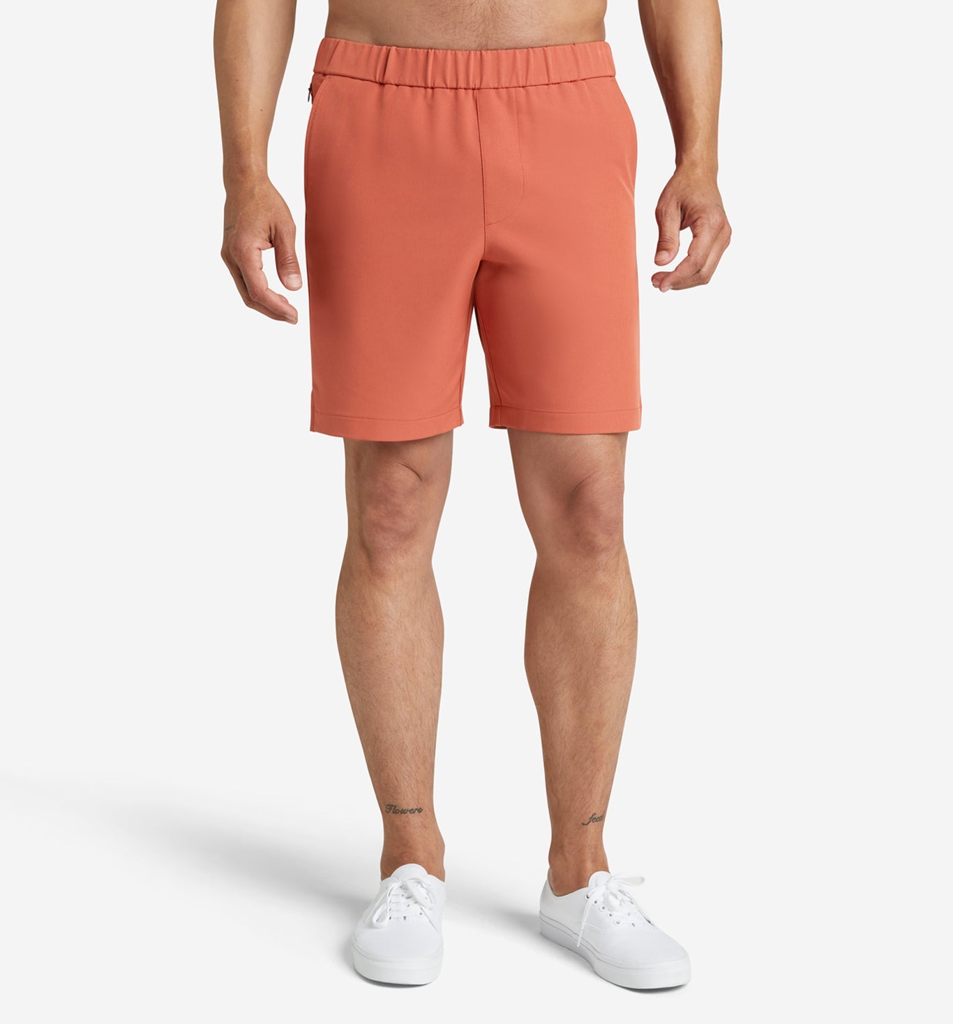 The Stretch Poly Twill Shorts prioritize comfort and practicality, featuring a soft, stretchable fabric with an elastic waist. Equipped with zippered pockets for secure storage, these shorts blend functional design with casual style.