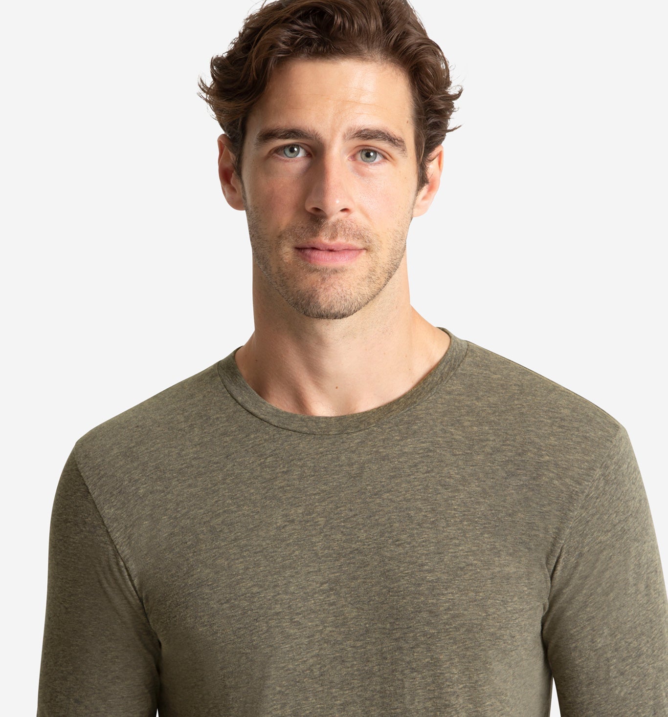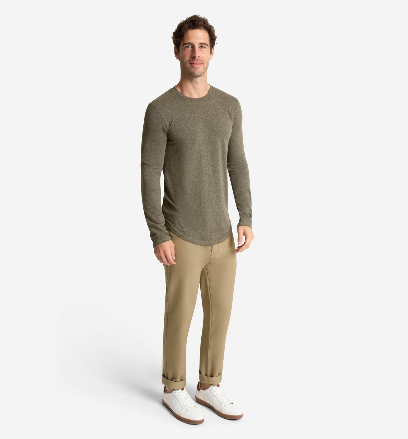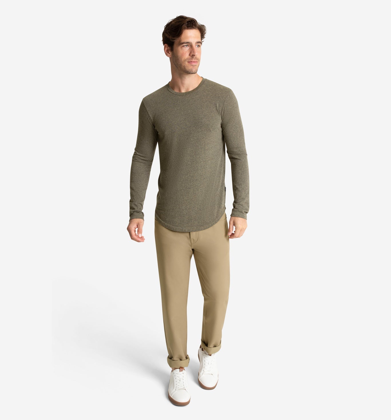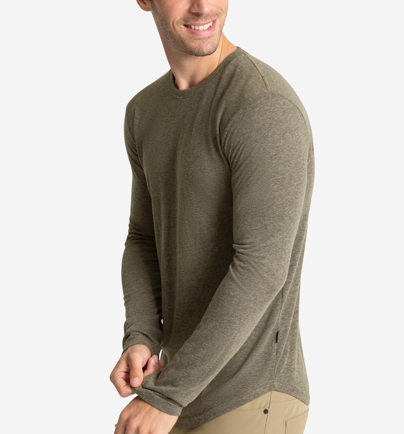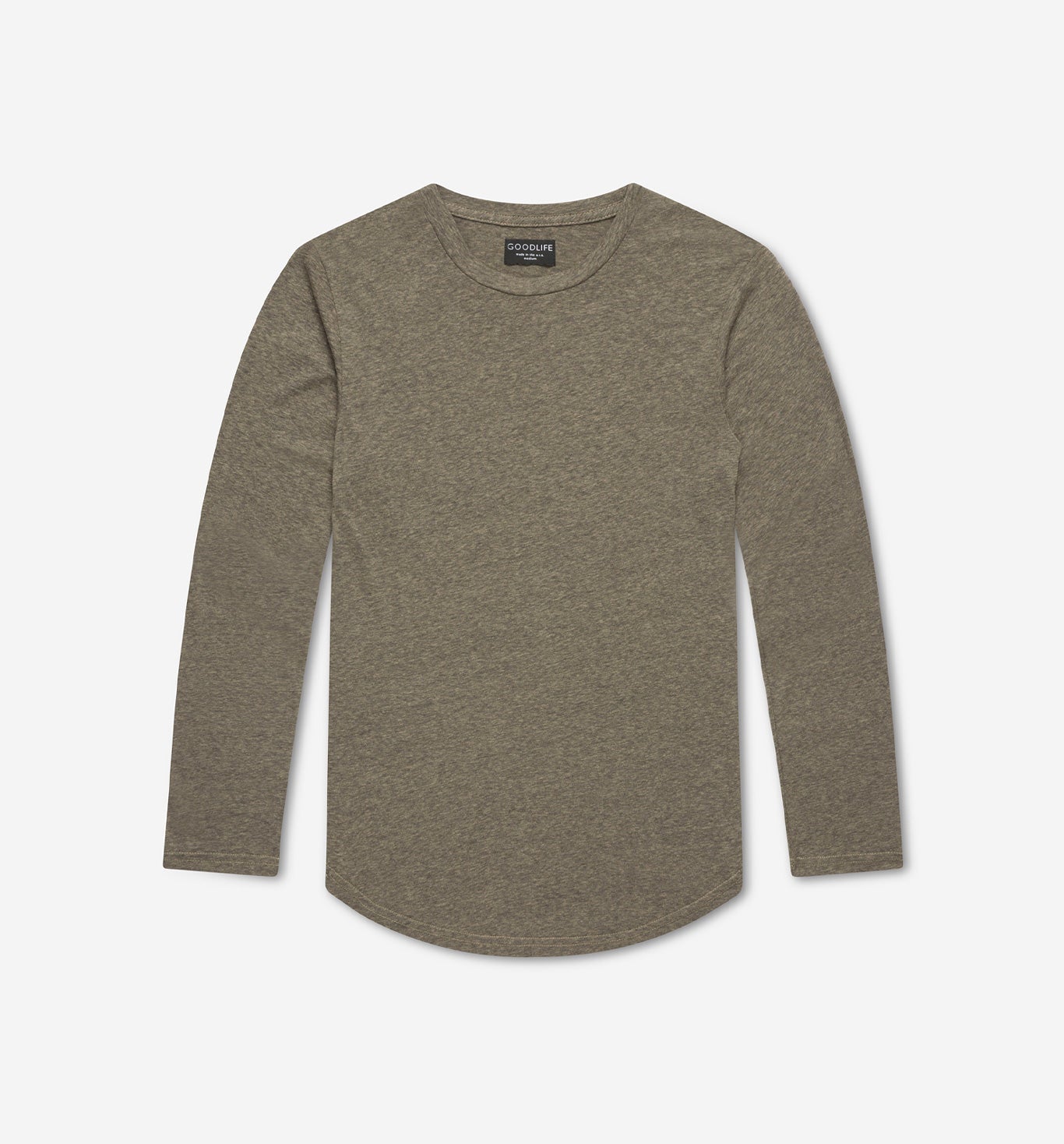 Our best selling l/s tri-blend scallop crew gets it's first update, ever. Same perfect fabric and fit, but without the contrast neck stitching. We have also updated the neck detail to include a bound neck similar to our fan favorite supima scallop crew. Made from our most durable jersey, while also being soft and lightweight - the blend of poly, cotton and rayon yarns give it its high-low color profile while always retaining its shape, wash after wash. Made in USA.
