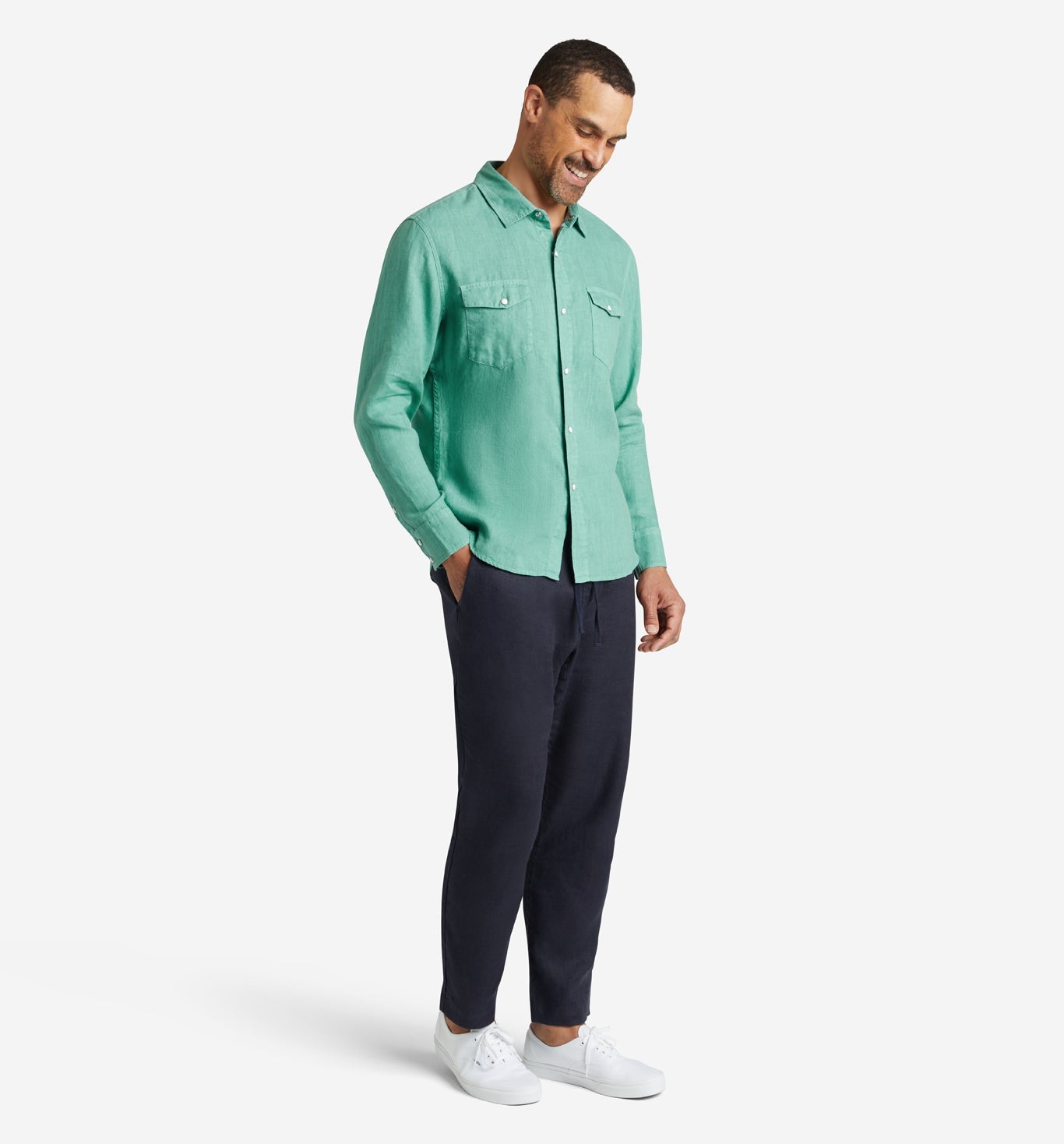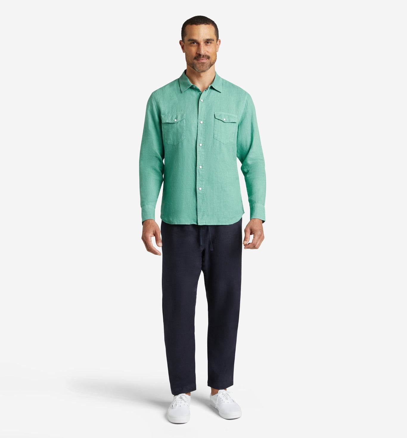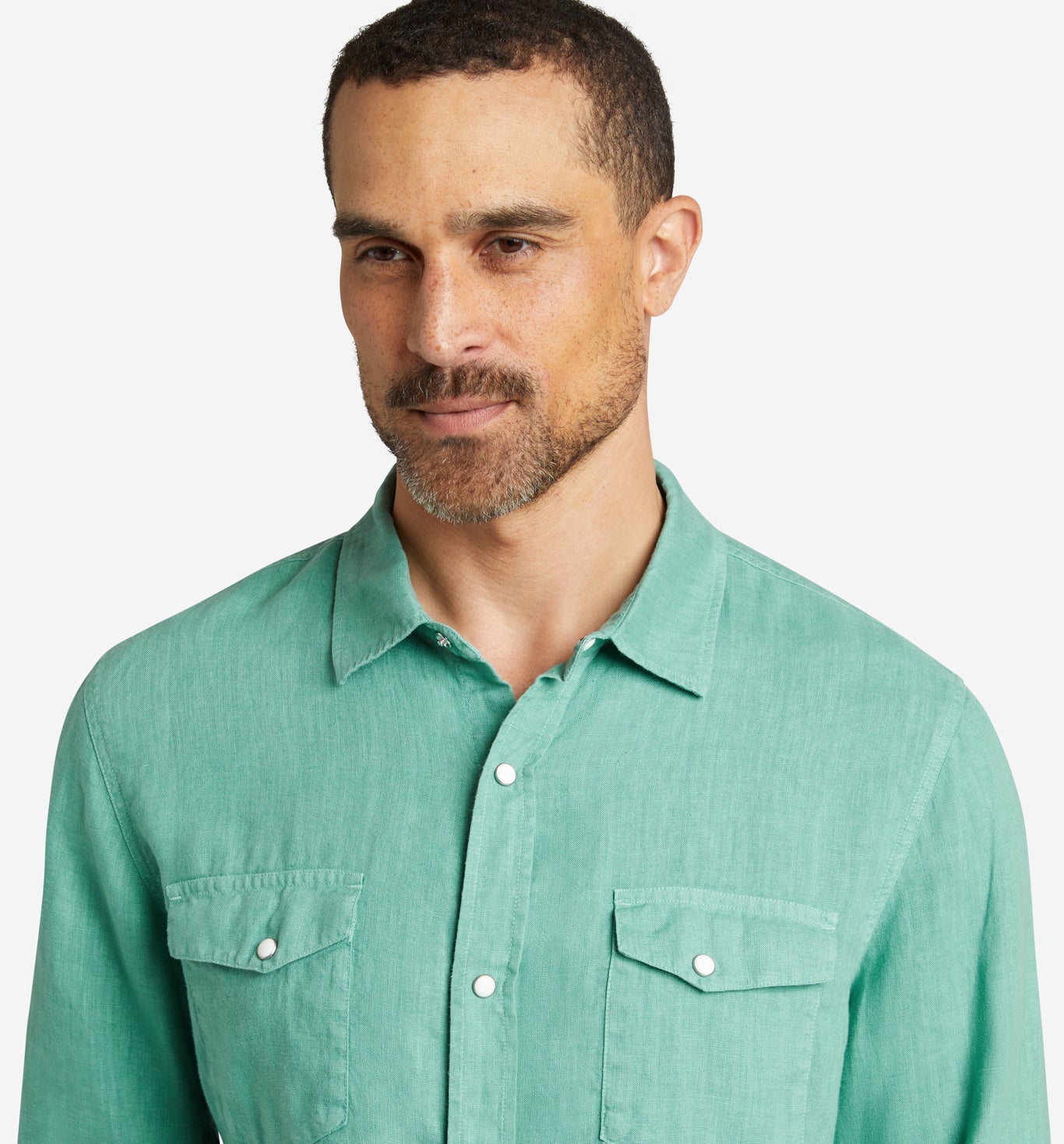 Optimized for versatility, the 4Corner Linen Snap Shirt is crafted from lightweight linen, making it a go-to for both casual and more formal occasions throughout the summer. This breathable fabric ensures comfort and ease of wear from day to night.