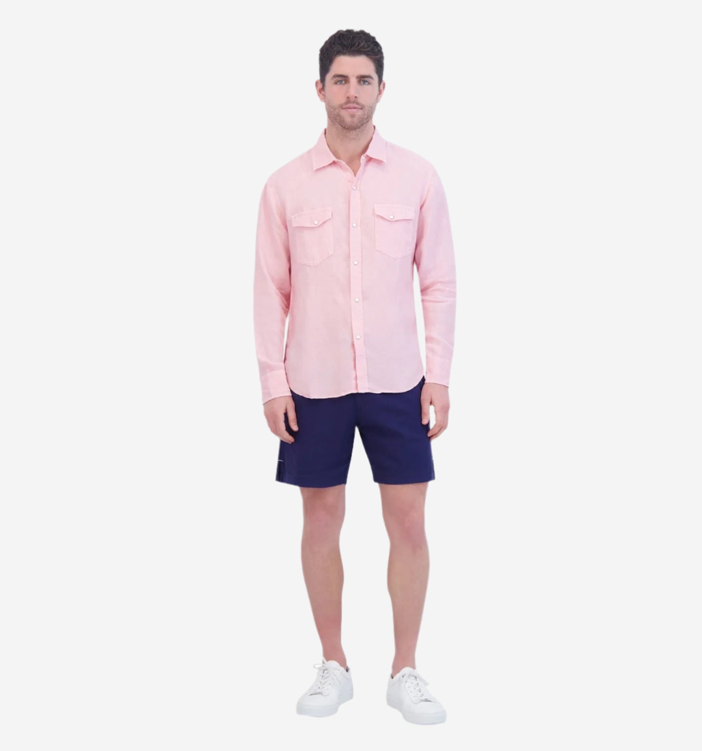 We’ve taken our super versatile and signature 4corner snap shirt and converted into the ultimate summer woven. Offered in a featherweight and breezy linen fabric, perfect for a day at the beach or a night out and everything in between.