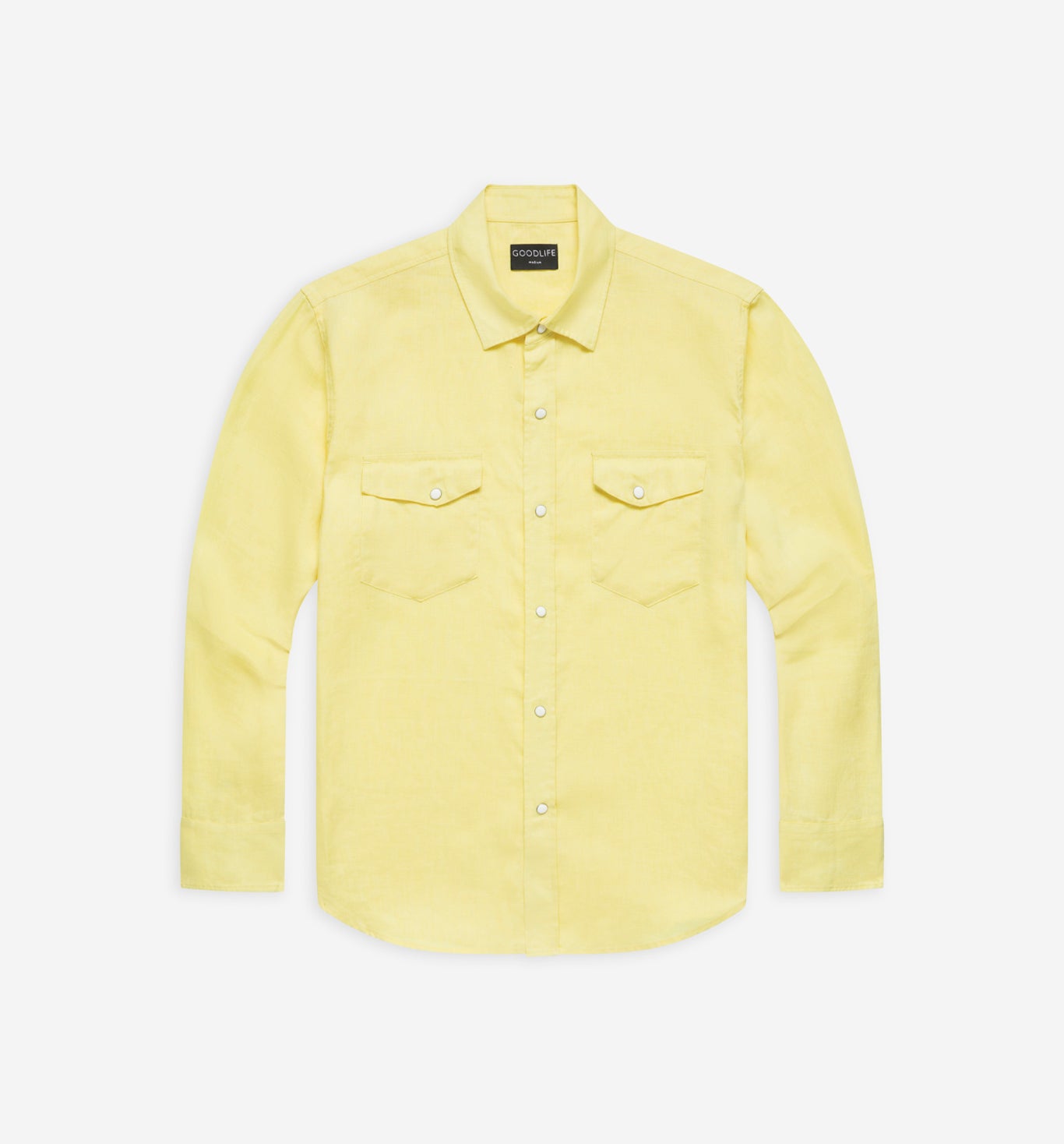 Optimized for versatility, the 4Corner Linen Snap Shirt is crafted from lightweight linen, making it a go-to for both casual and more formal occasions throughout the summer. This breathable fabric ensures comfort and ease of wear from day to night.