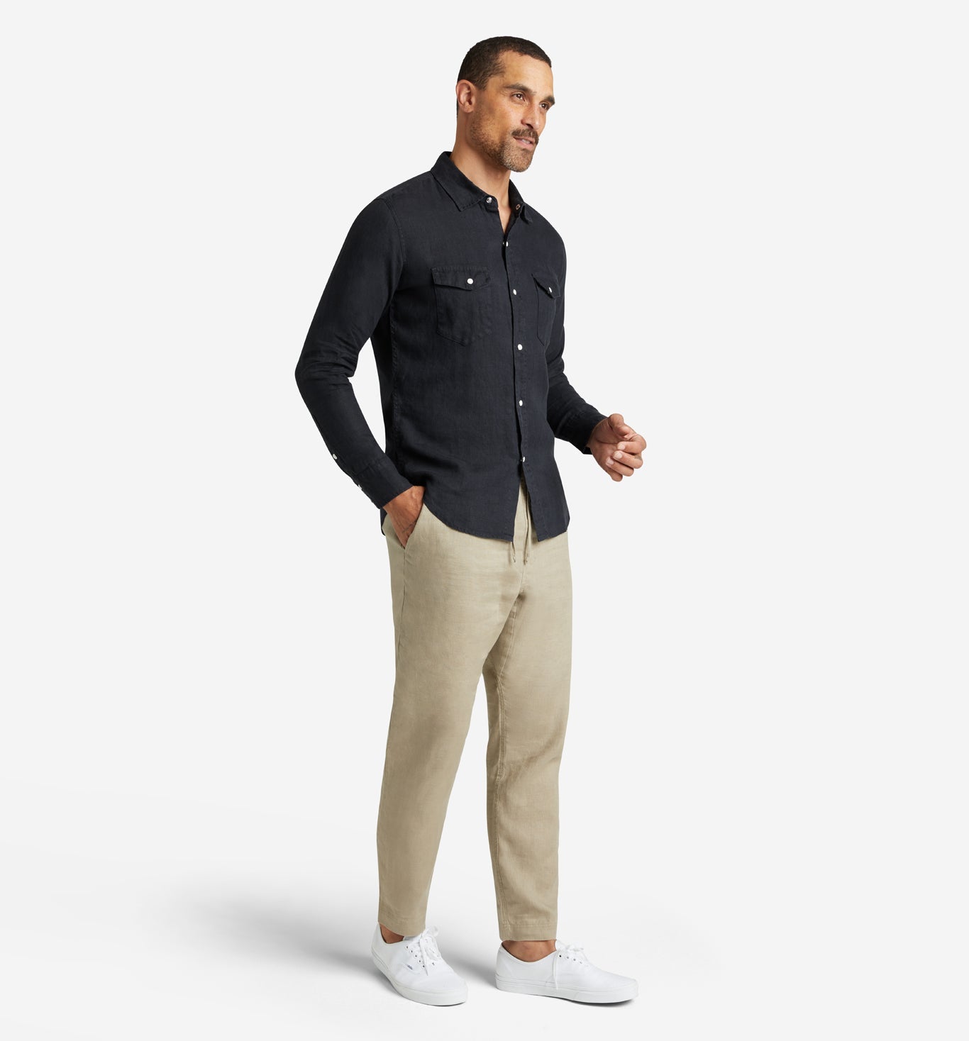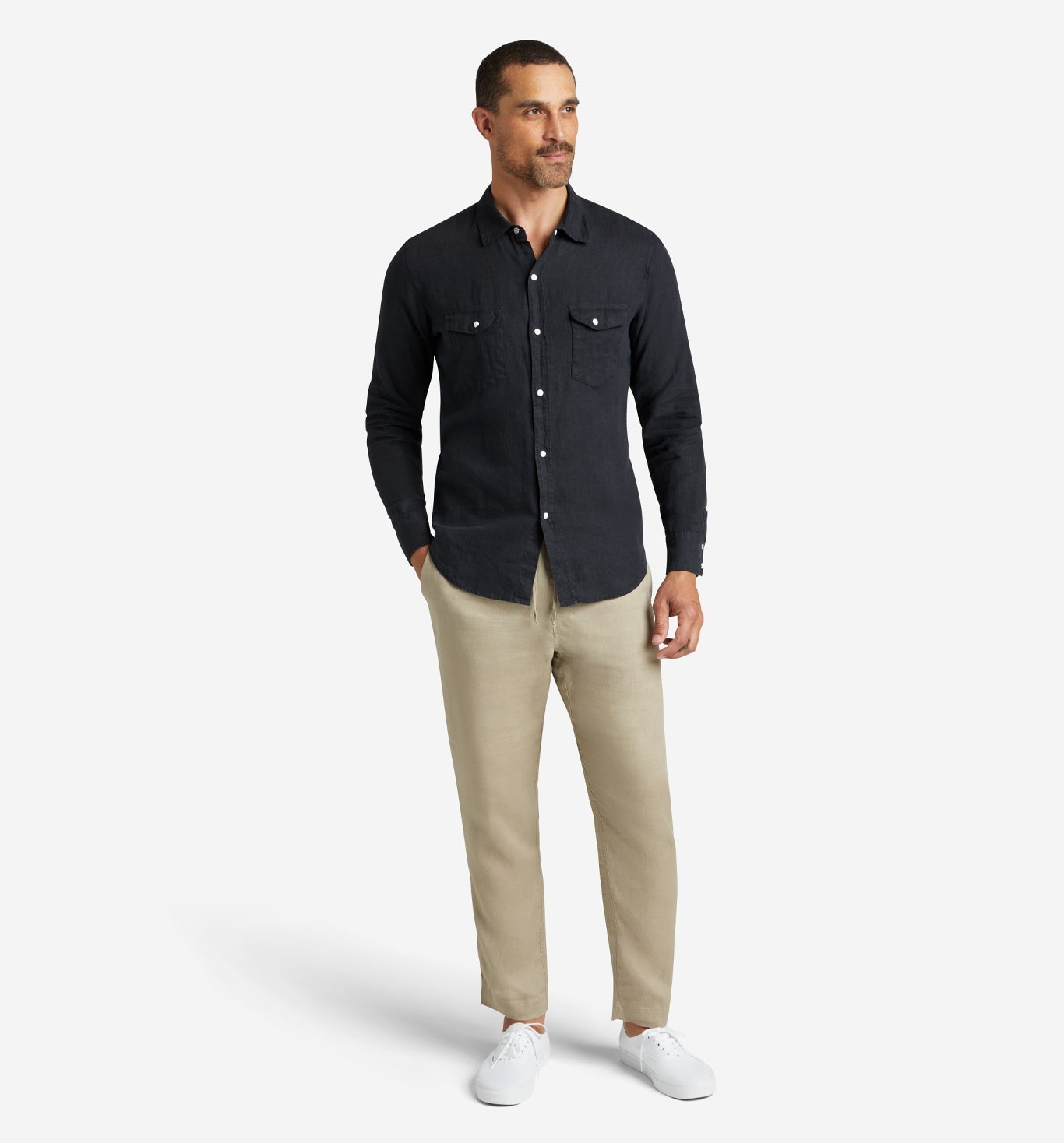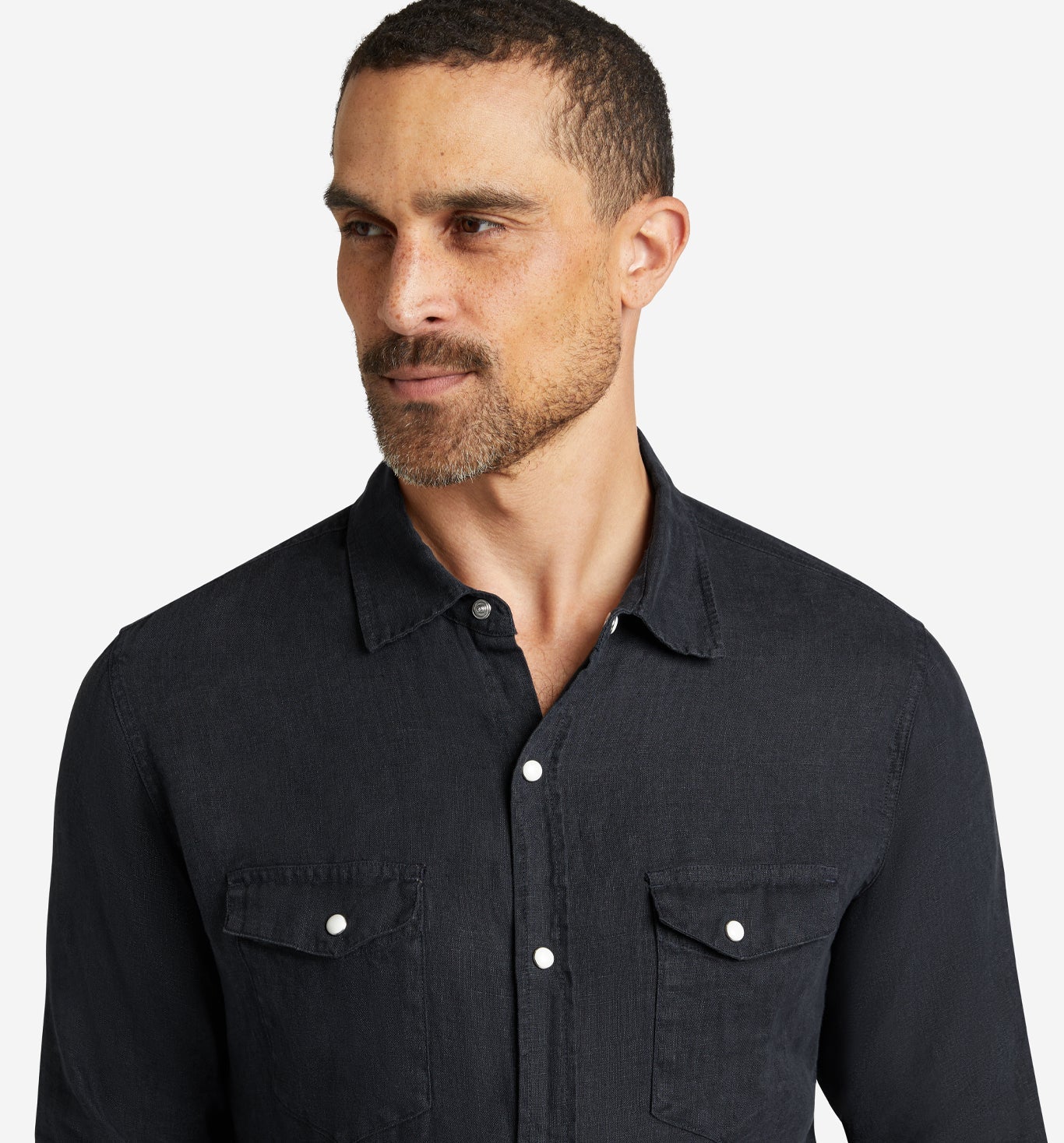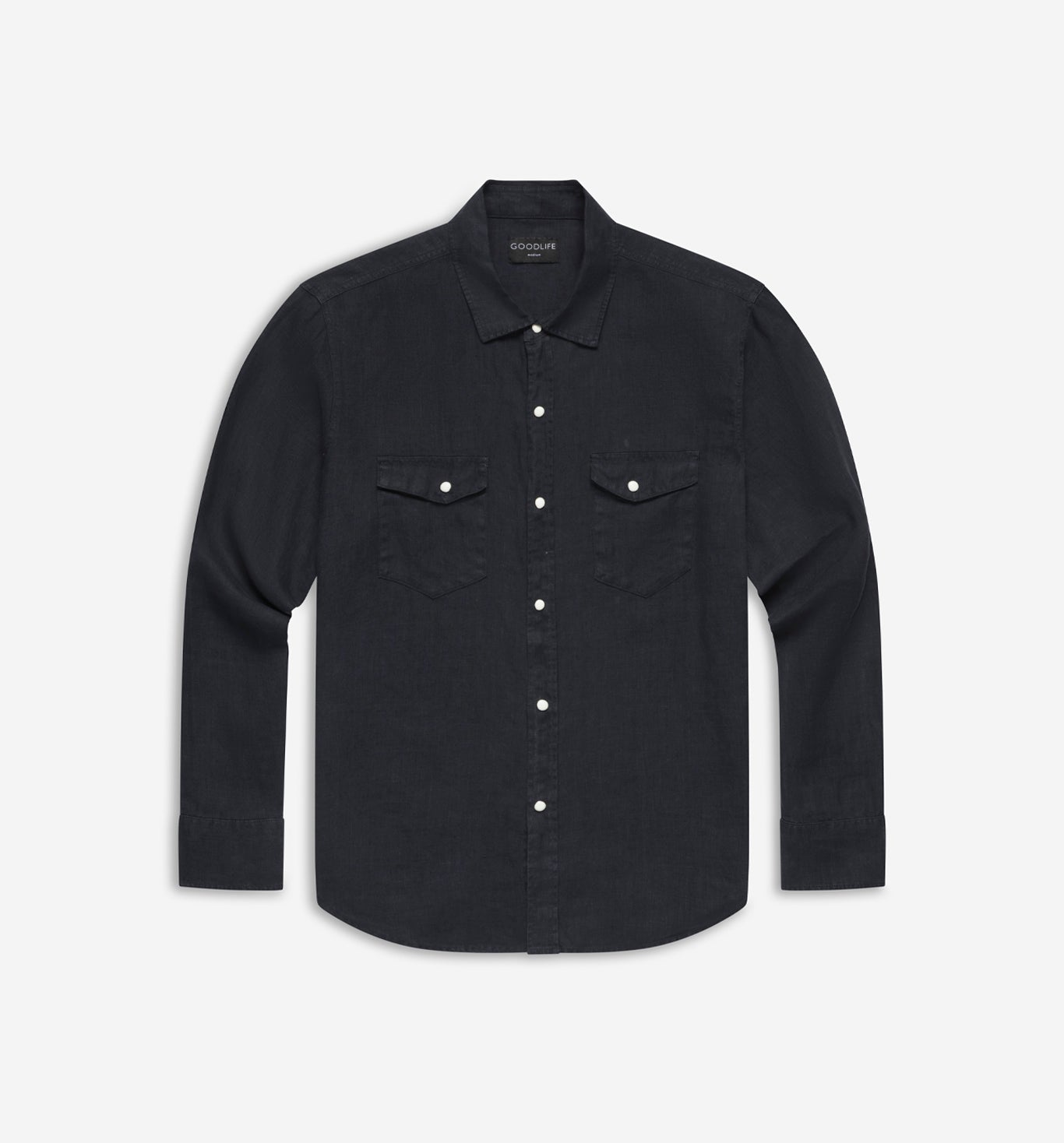 Optimized for versatility, the 4Corner Linen Snap Shirt is crafted from lightweight linen, making it a go-to for both casual and more formal occasions throughout the summer. This breathable fabric ensures comfort and ease of wear from day to night.