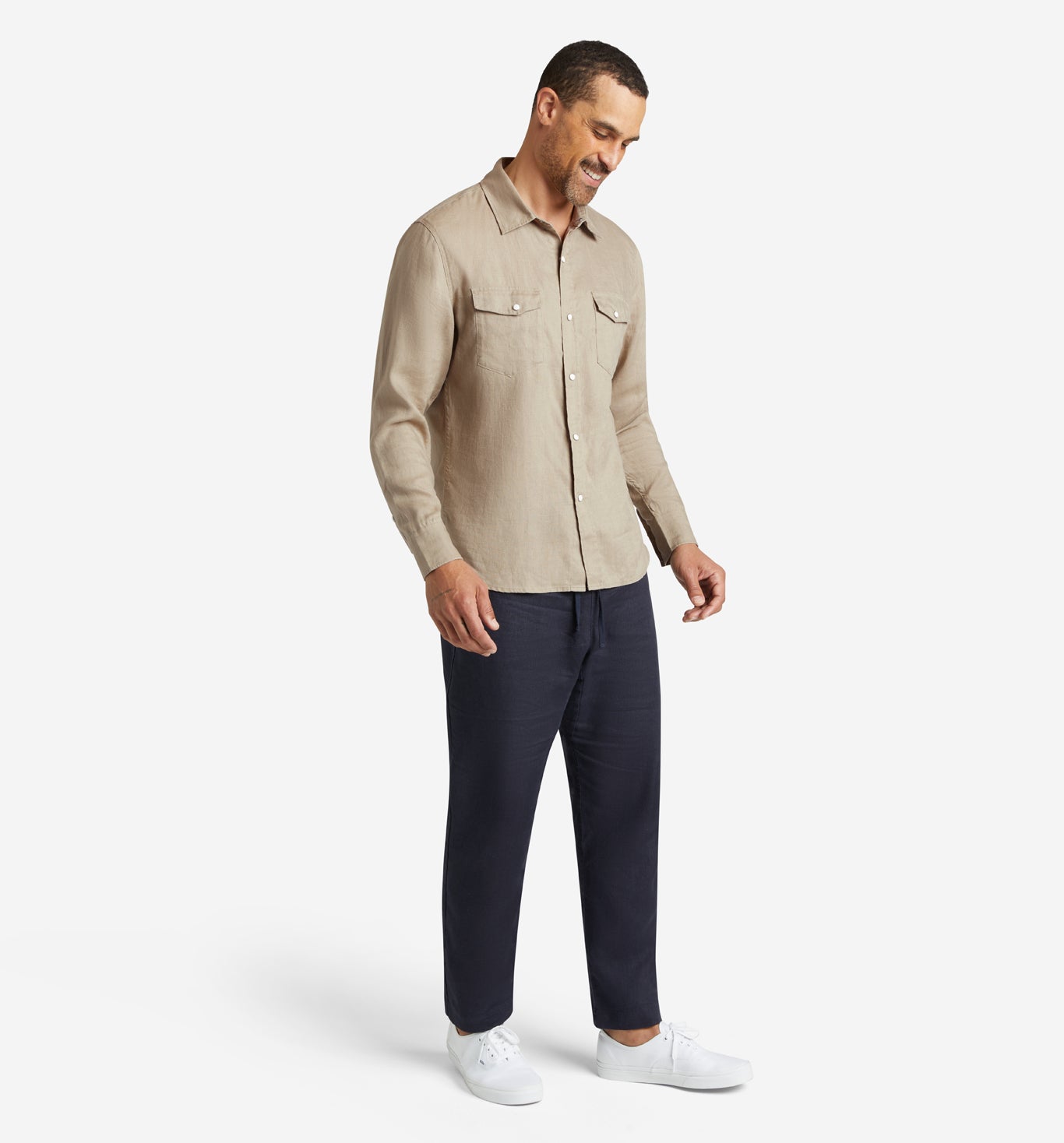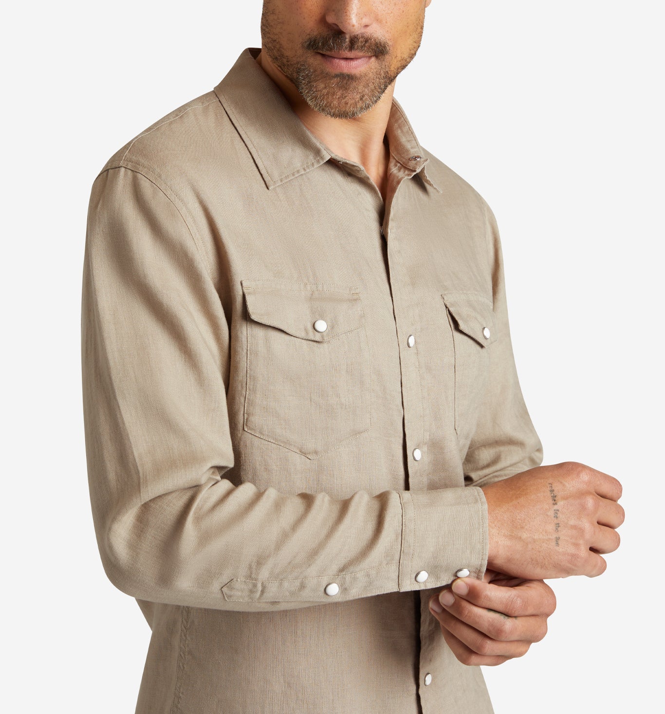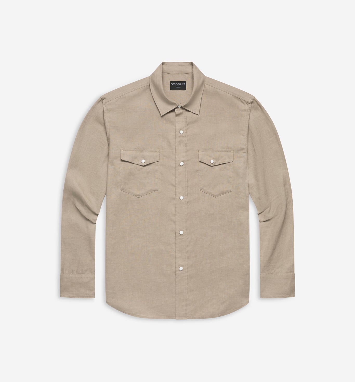 Optimized for versatility, the 4Corner Linen Snap Shirt is crafted from lightweight linen, making it a go-to for both casual and more formal occasions throughout the summer. This breathable fabric ensures comfort and ease of wear from day to night.