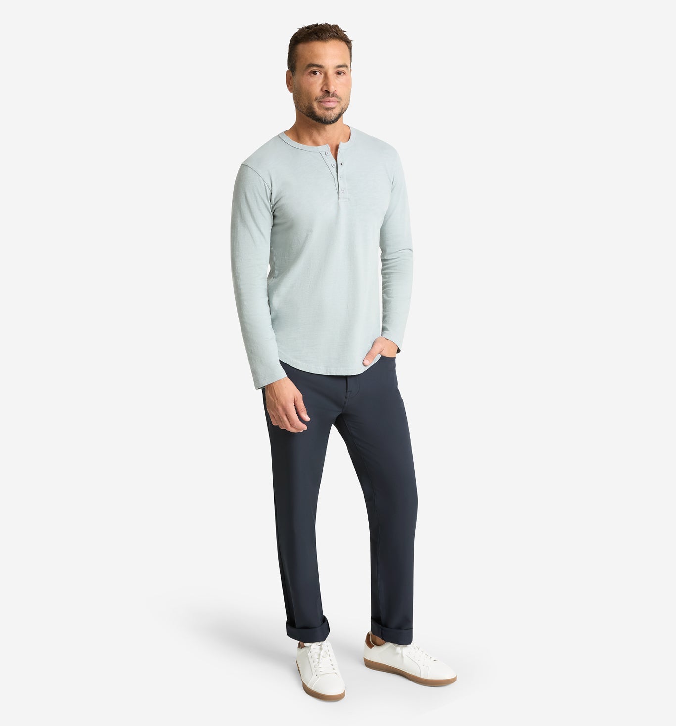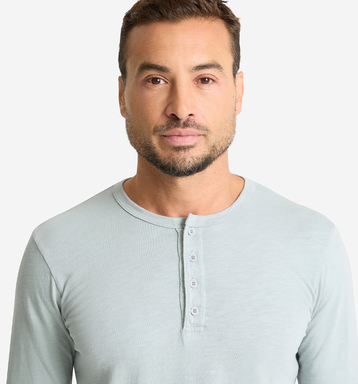 Long sleeve Henley with a subtle scalloped hem for added style. Made from soft slub cotton for a lightweight and breathable feel. The relaxed texture provides a flattering fit and versatile look perfect for layering or wearing on its own.