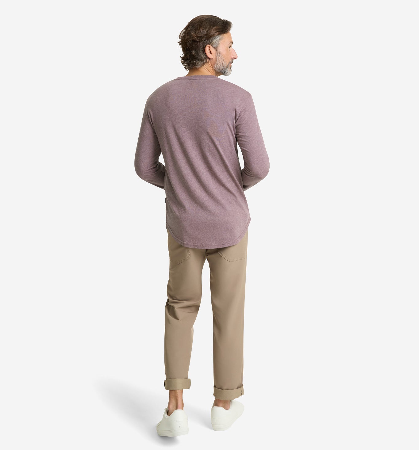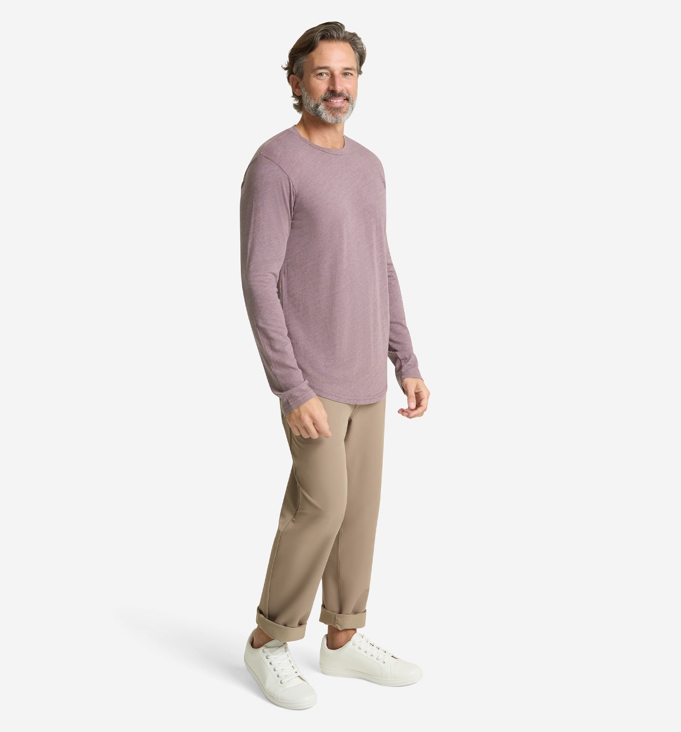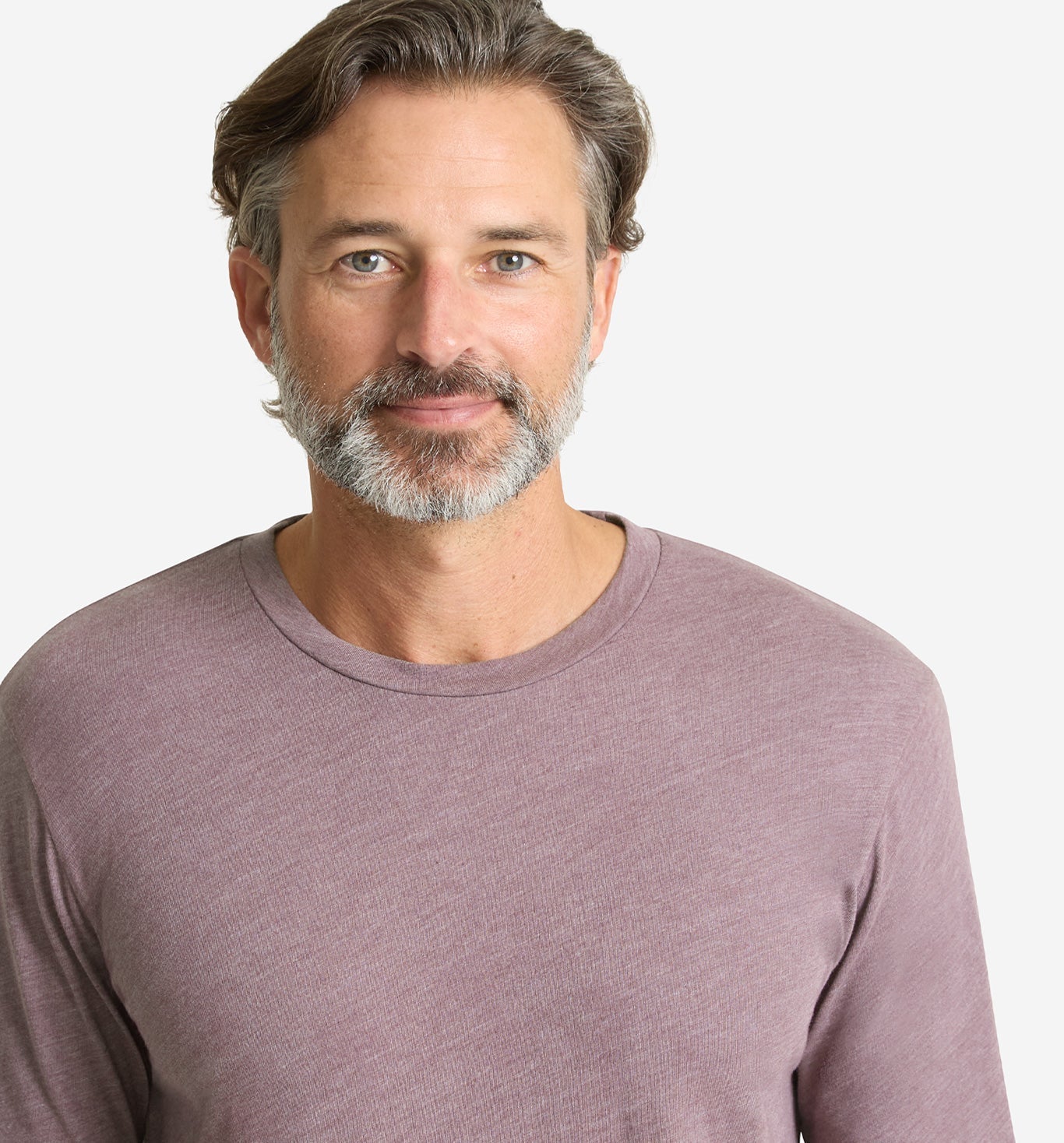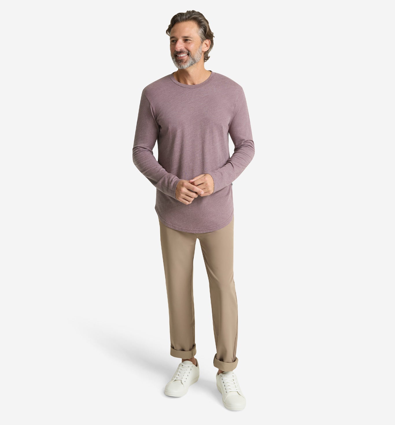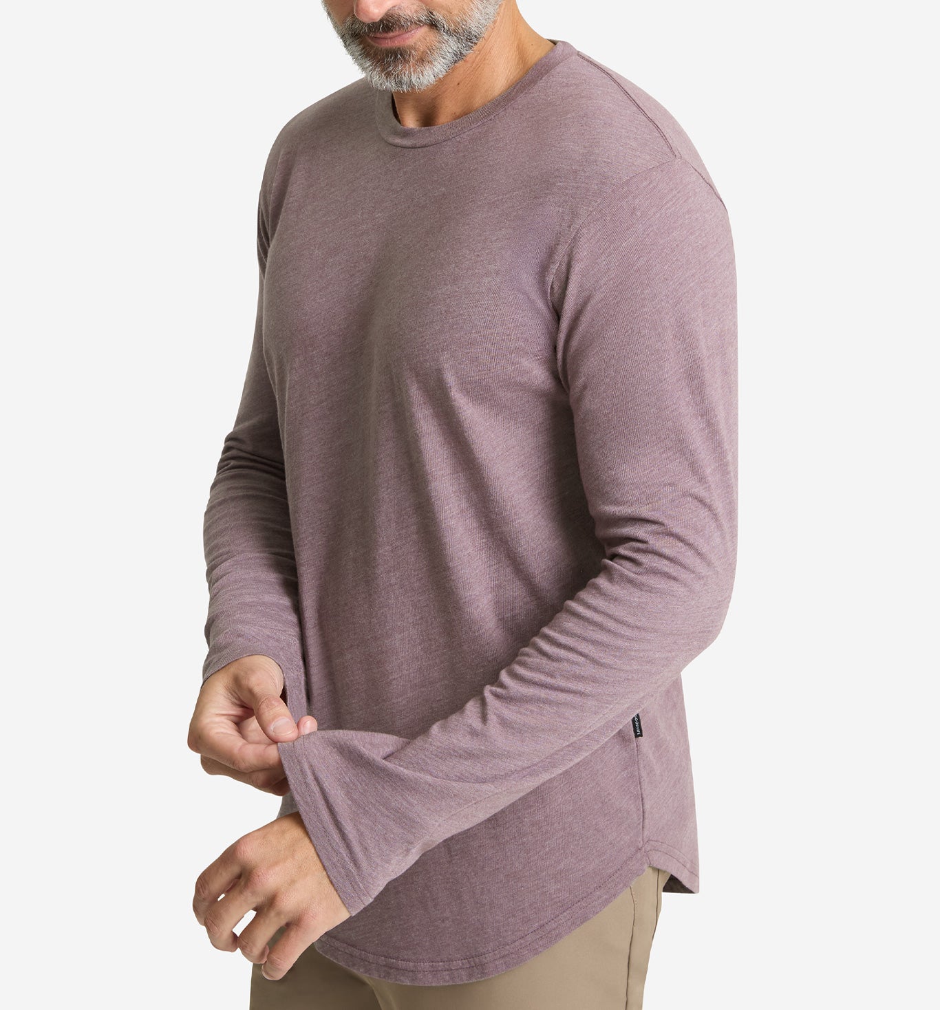 Our best selling l/s tri-blend scallop crew gets it's first update, ever. Same perfect fabric and fit, but without the contrast neck stitching. We have also updated the neck detail to include a bound neck similar to our fan favorite supima scallop crew. Made from our most durable jersey, while also being soft and lightweight - the blend of poly, cotton and rayon yarns give it its high-low color profile while always retaining its shape, wash after wash. Made in USA.