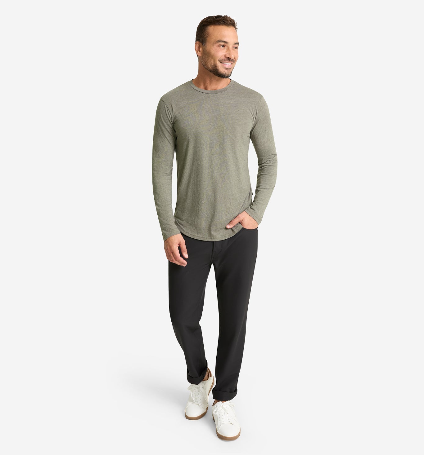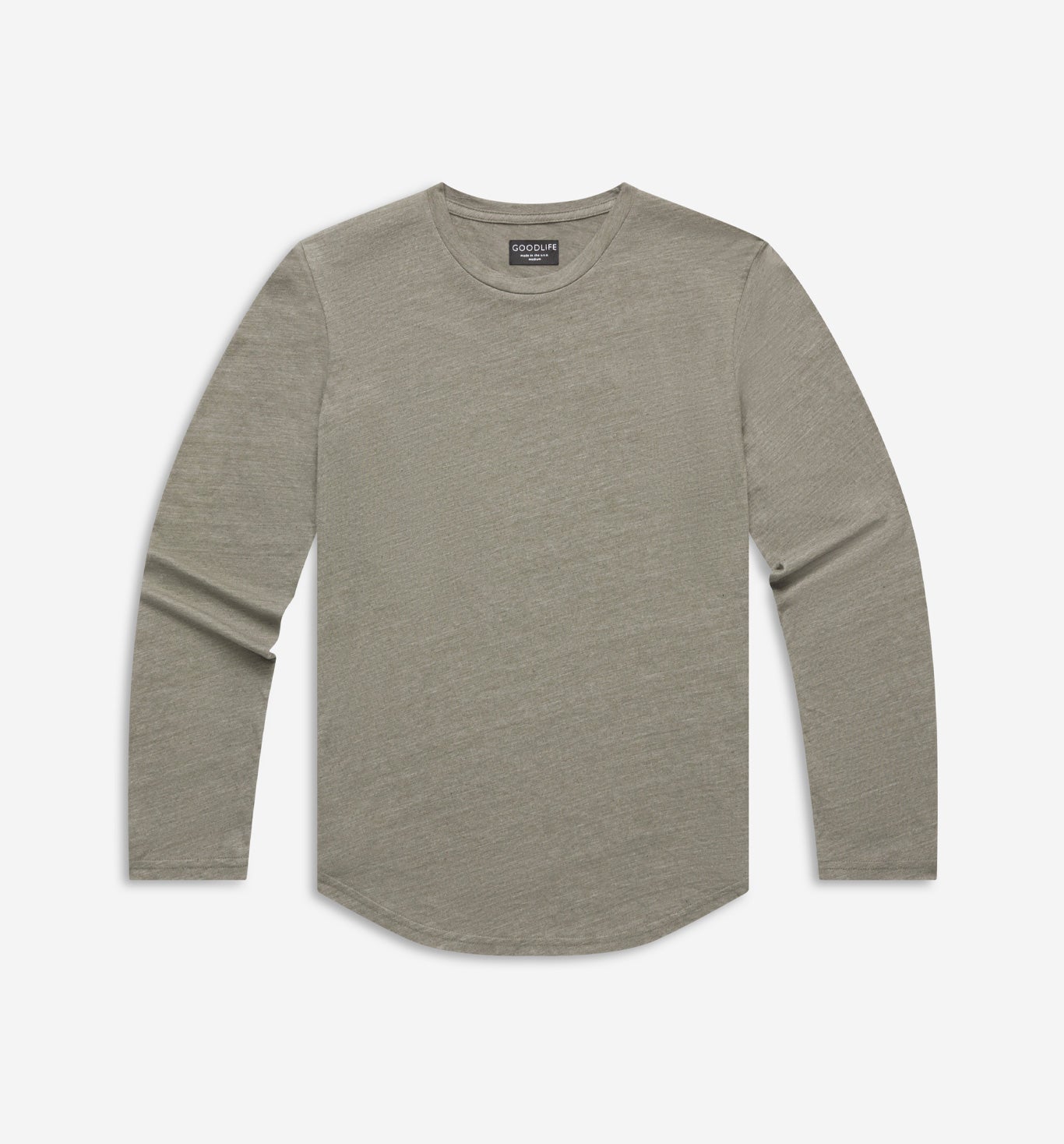 Our best selling l/s tri-blend scallop crew gets it's first update, ever. Same perfect fabric and fit, but without the contrast neck stitching. We have also updated the neck detail to include a bound neck similar to our fan favorite supima scallop crew. Made from our most durable jersey, while also being soft and lightweight - the blend of poly, cotton and rayon yarns give it its high-low color profile while always retaining its shape, wash after wash. Made in USA.