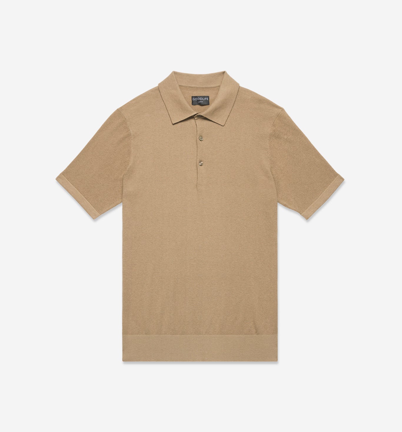 Discover the refined feel of our Short Sleeve Mini Waffle Knit Polo, showcasing Goodlife’s exceptional fit in a versatile design. This polo features a distinctive mini waffle knit fabric, enhanced with ribbed trim at the sleeves, showcasing an impeccable blend of casual elegance and comfort.
