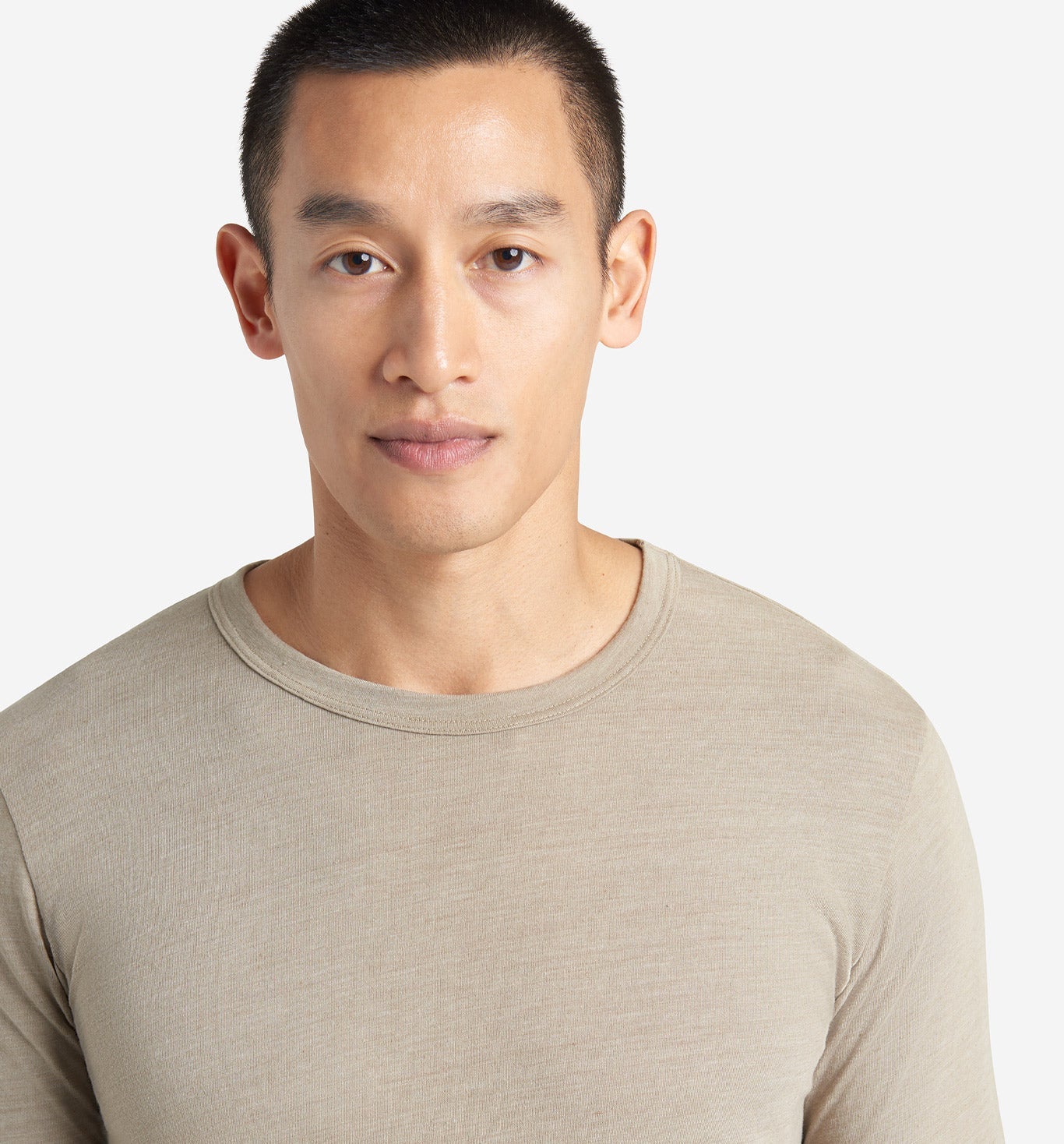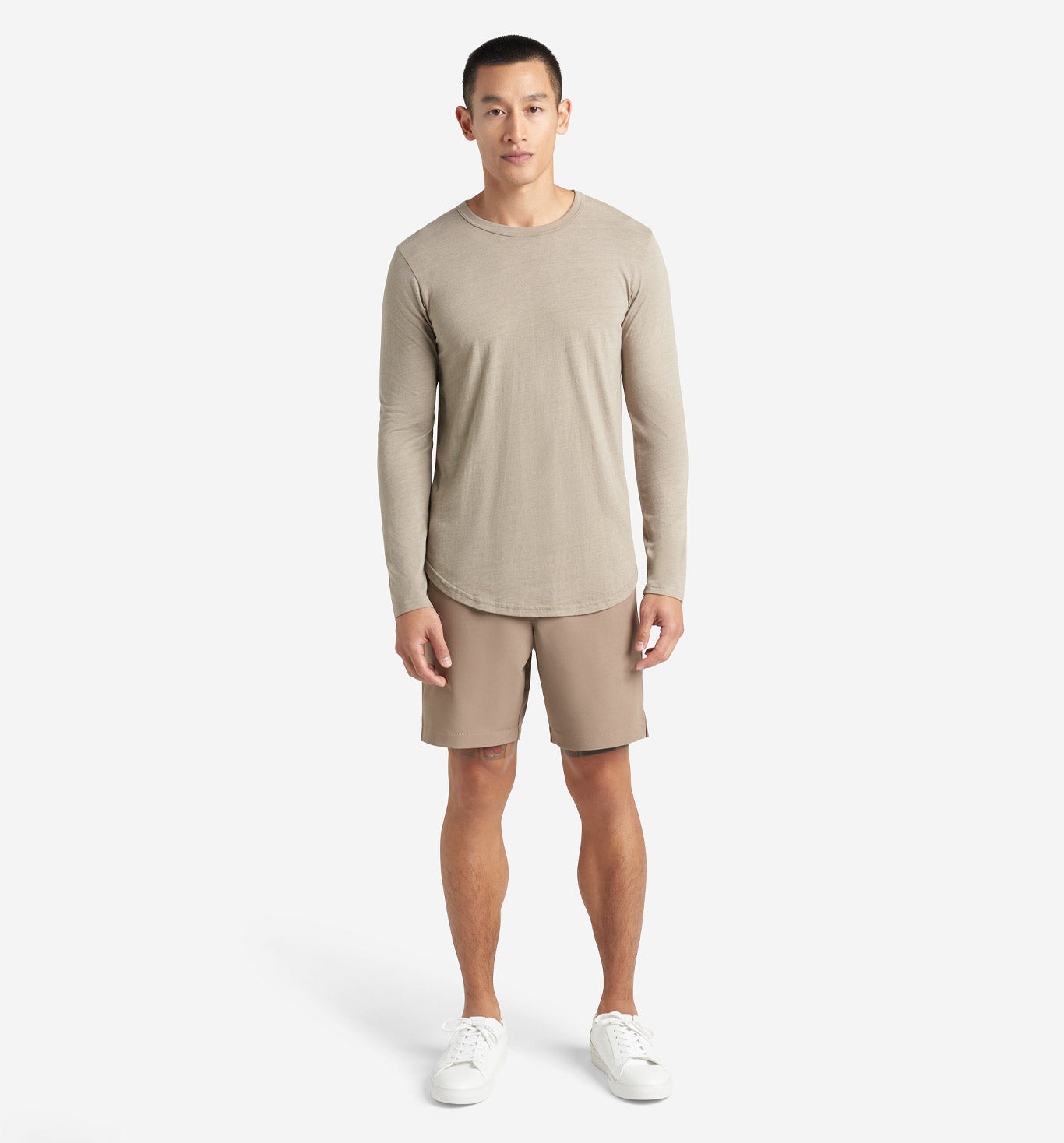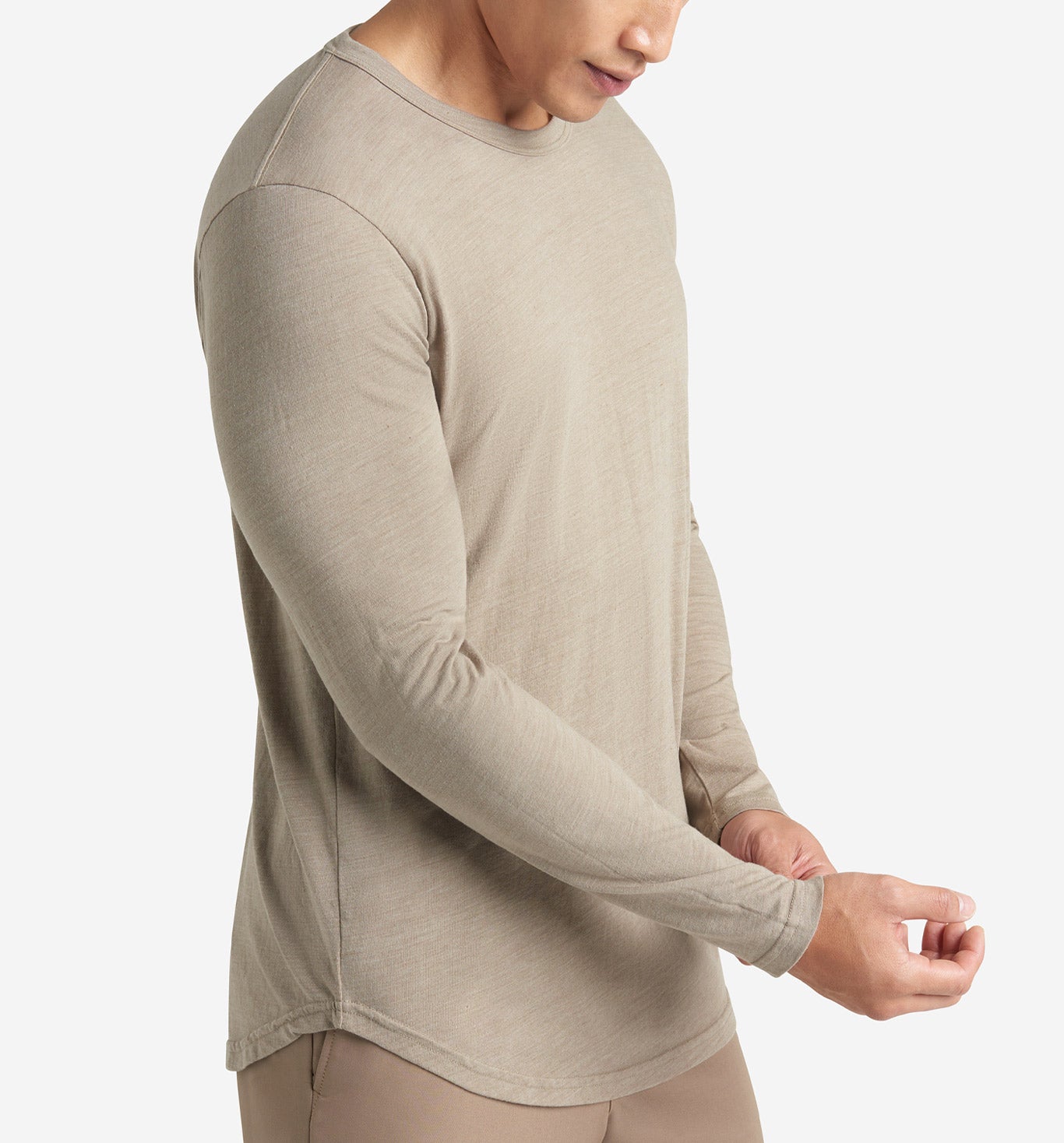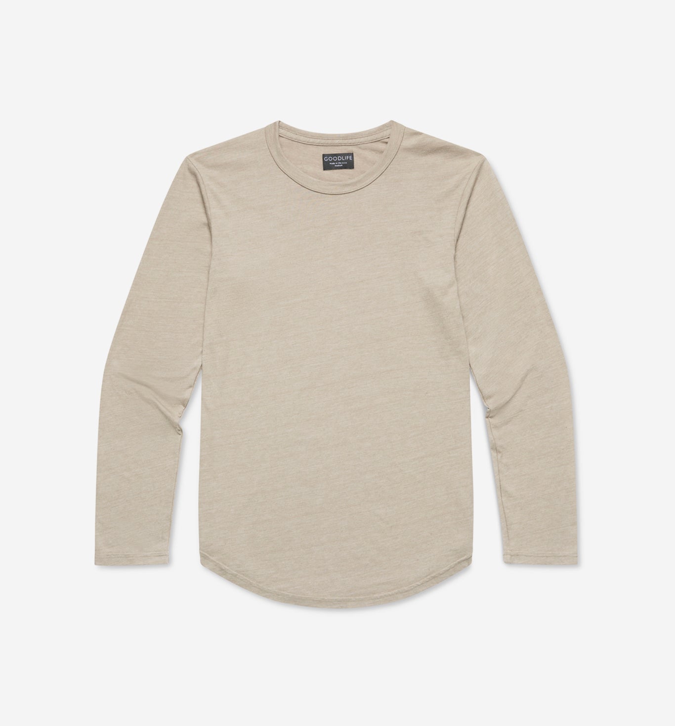 Our best selling l/s tri-blend scallop crew gets it's first update, ever. Same perfect fabric and fit, but without the contrast neck stitching. We have also updated the neck detail to include a bound neck similar to our fan favorite supima scallop crew. Made from our most durable jersey, while also being soft and lightweight - the blend of poly, cotton and rayon yarns give it its high-low color profile while always retaining its shape, wash after wash. Made in USA.