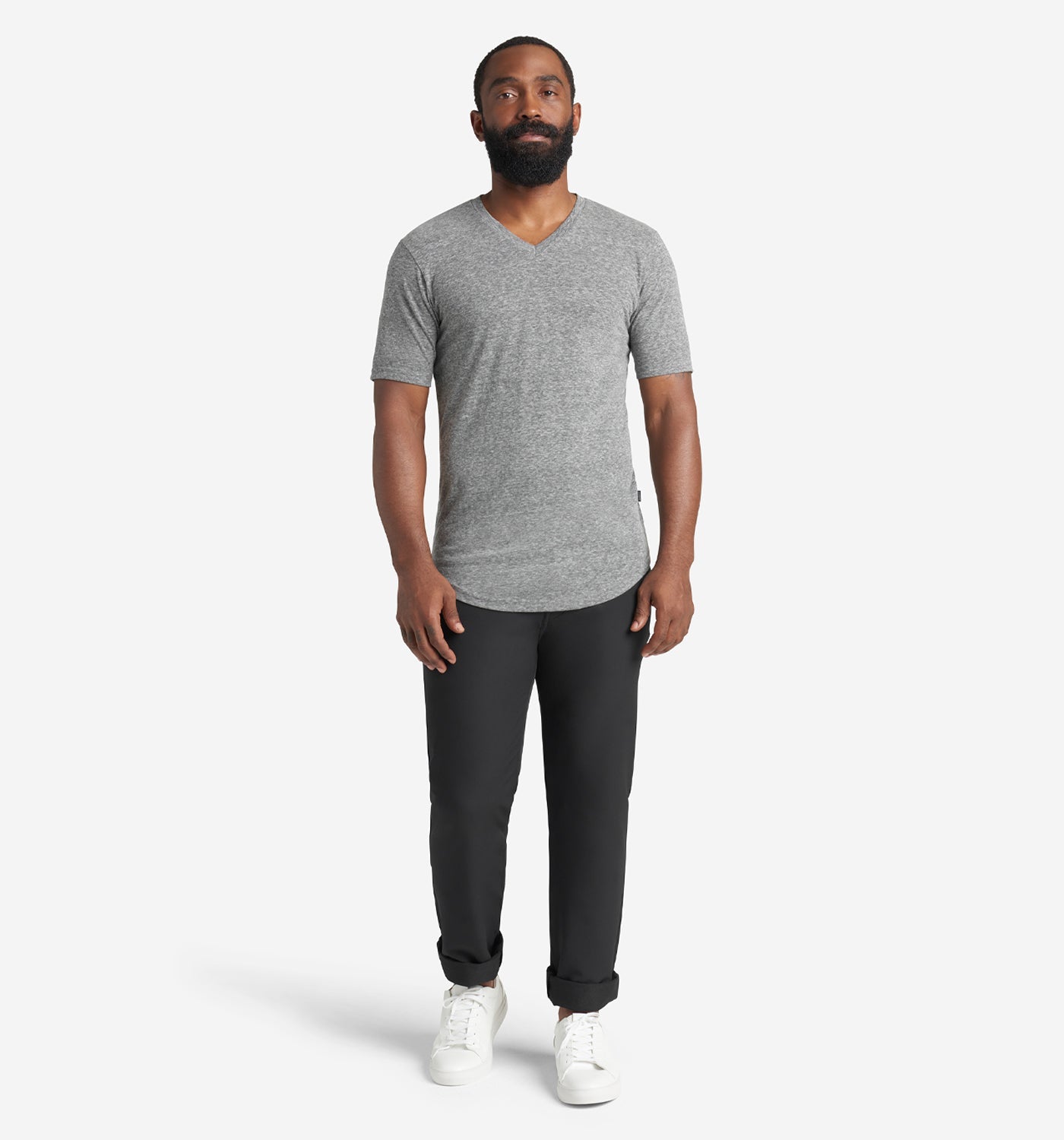 Our best selling tri-blend scallop v gets it's first update, ever. Same perfect fabric and fit, but without the contrast neck stitching. Made from our most durable jersey, while also being soft and lightweight - the blend of poly, cotton and rayon yarns give it its high-low color profile while always retaining its shape, wash after wash. Made in USA.