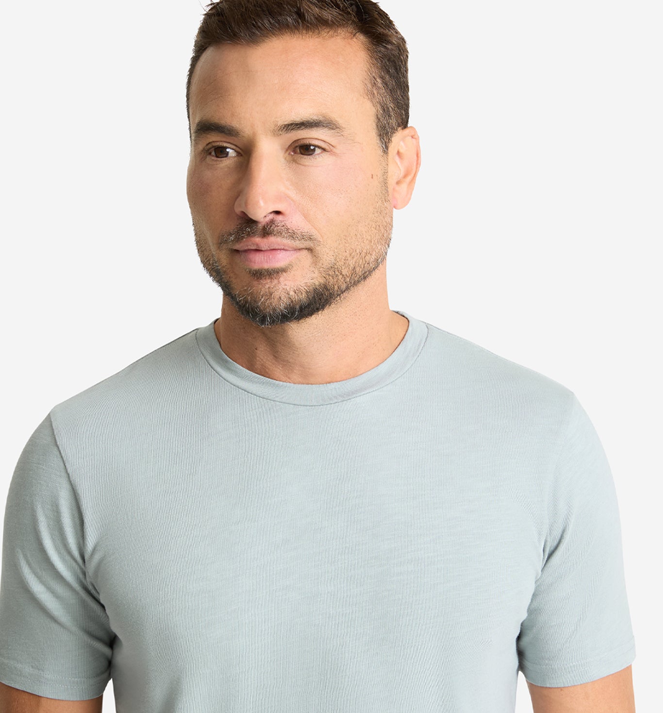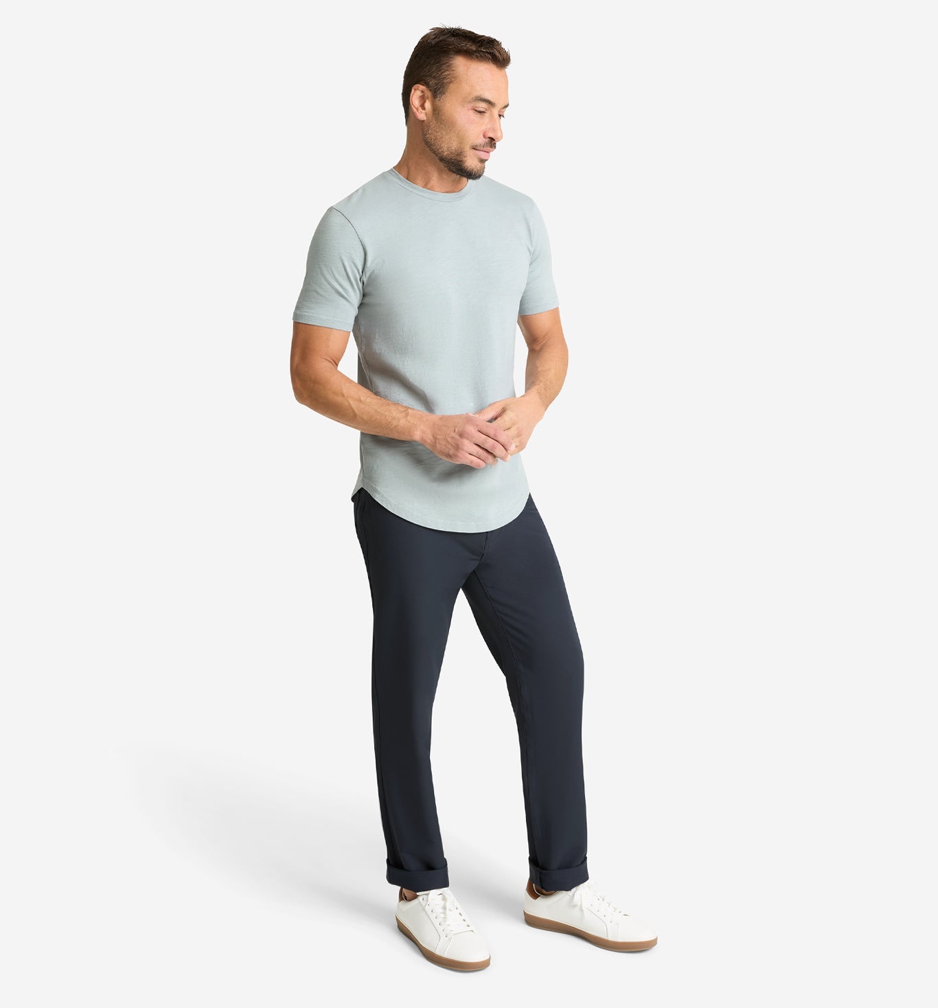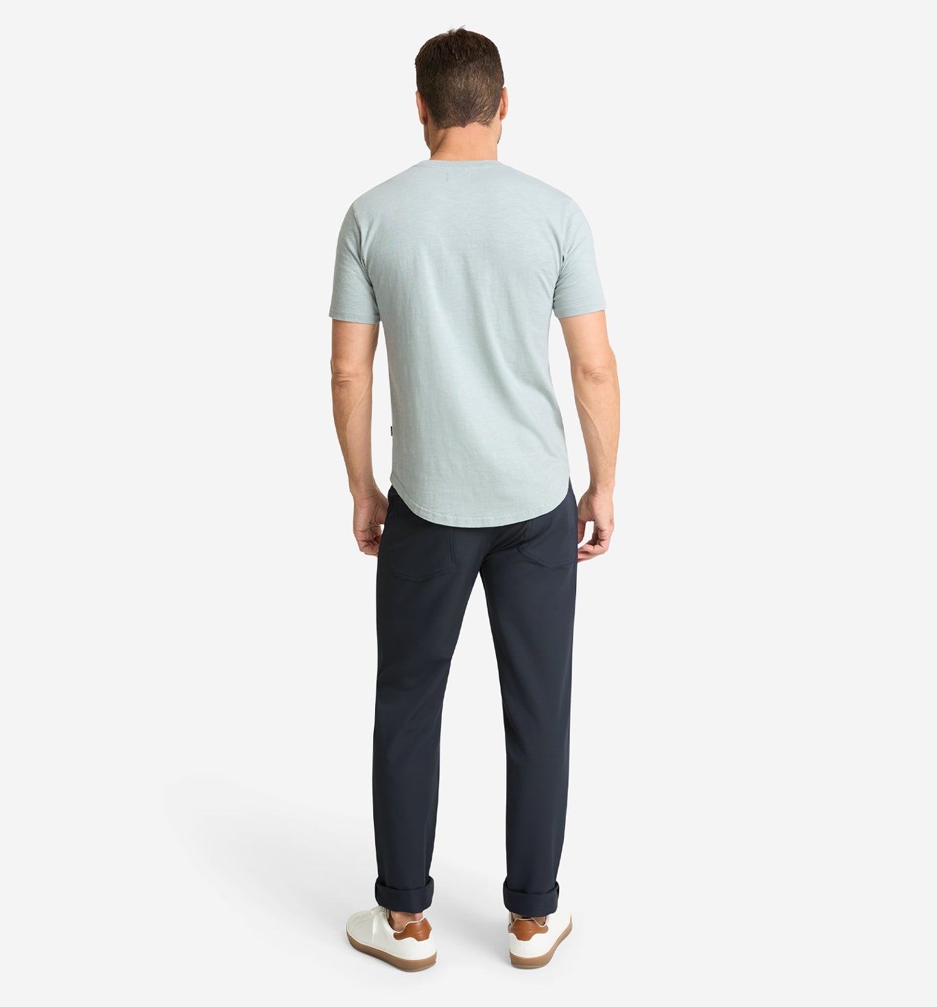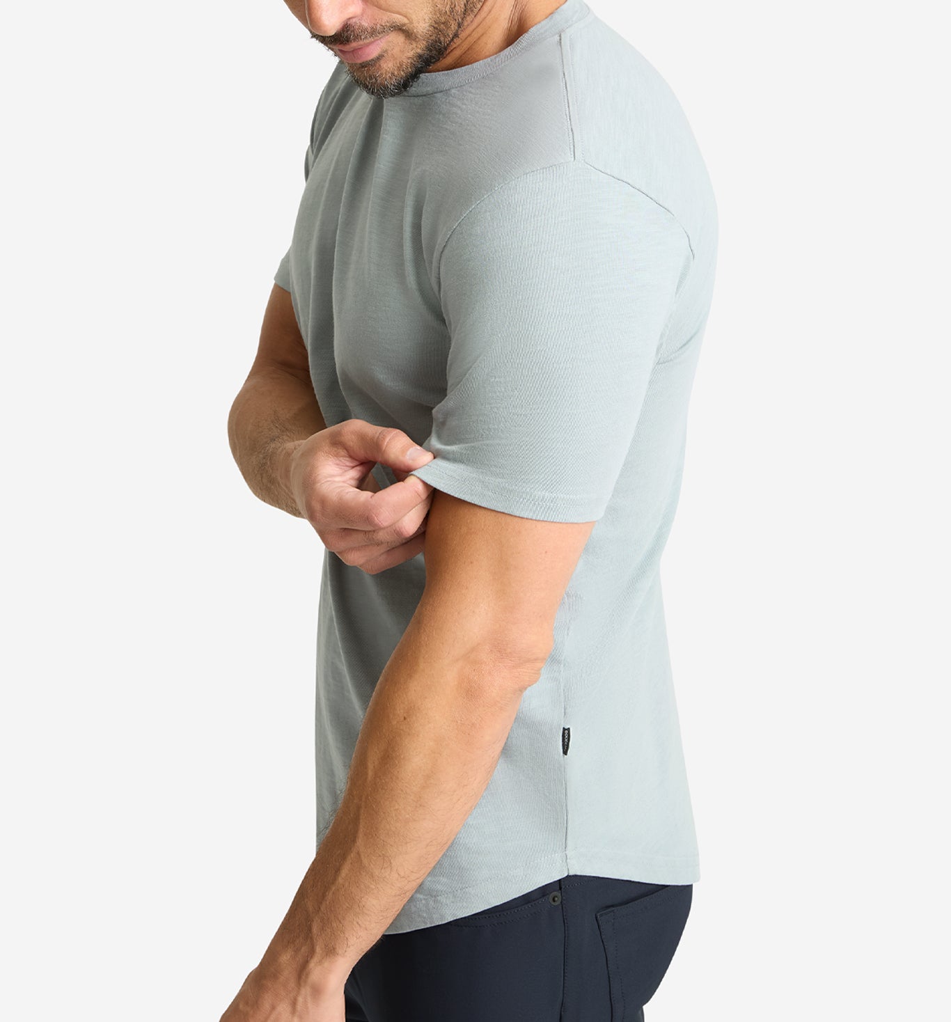Featuring midweight cotton slub yarns, the Slub Scallop Crew is tailored for both comfort and longevity. The intentional uneven texture of the fabric enhances with age, paired with a scalloped hem that adds a modern touch to this durable garment.