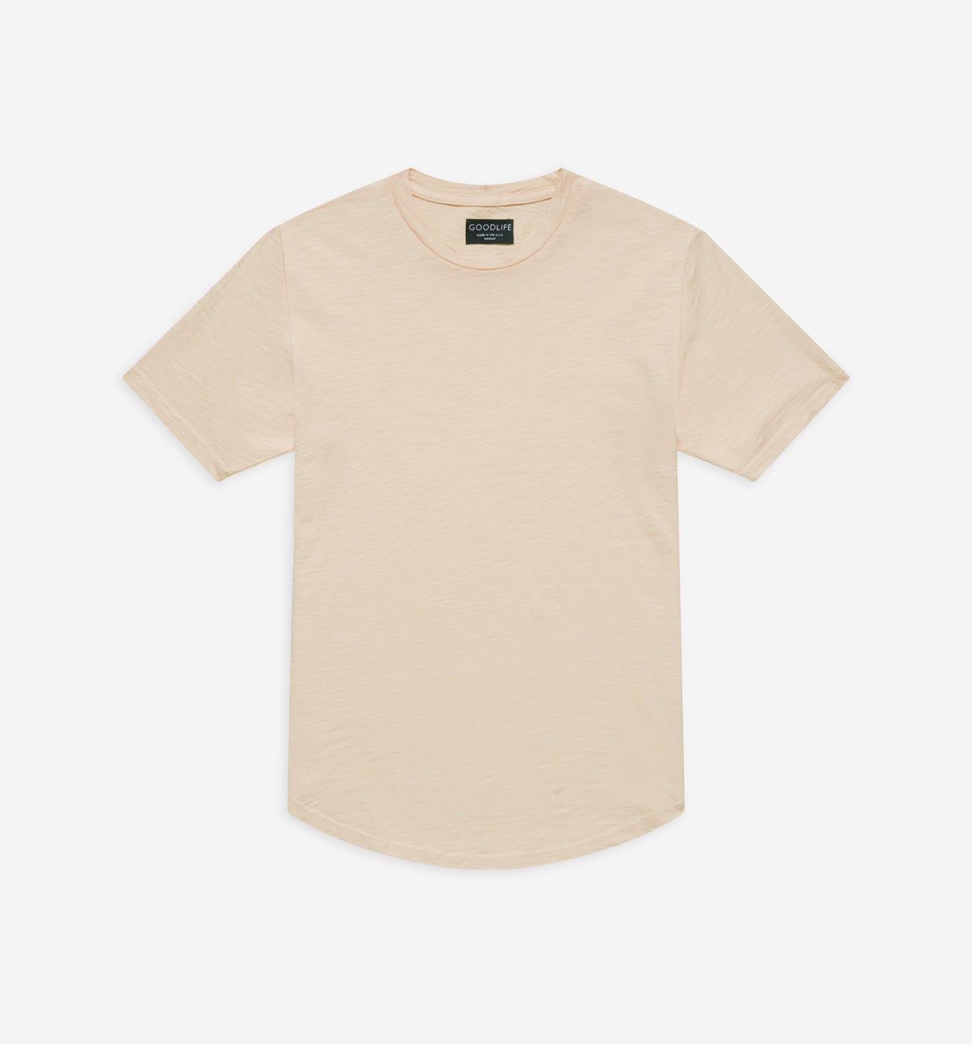 Featuring midweight cotton slub yarns, the Slub Scallop Crew is tailored for both comfort and longevity. The intentional uneven texture of the fabric enhances with age, paired with a scalloped hem that adds a modern touch to this durable garment.