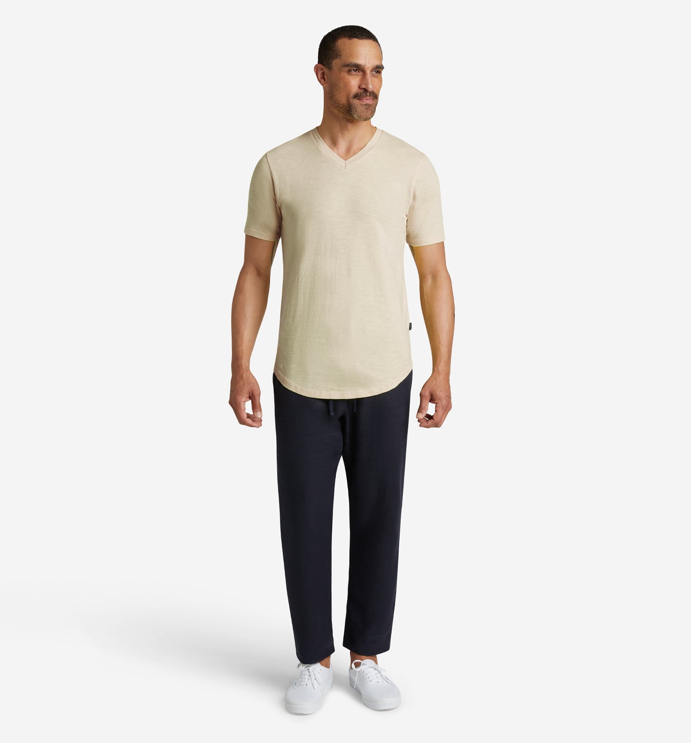 The Slub Scallop V combines a classic v-neck design with the durability of midweight cotton slub fabric. The intentionally uneven texture adds a refined look that matures over time, ensuring this piece remains a staple in your wardrobe.