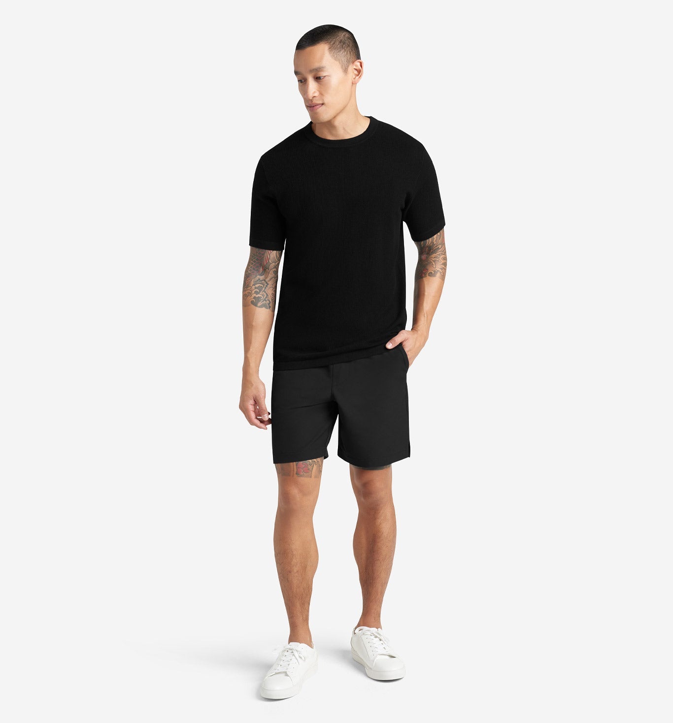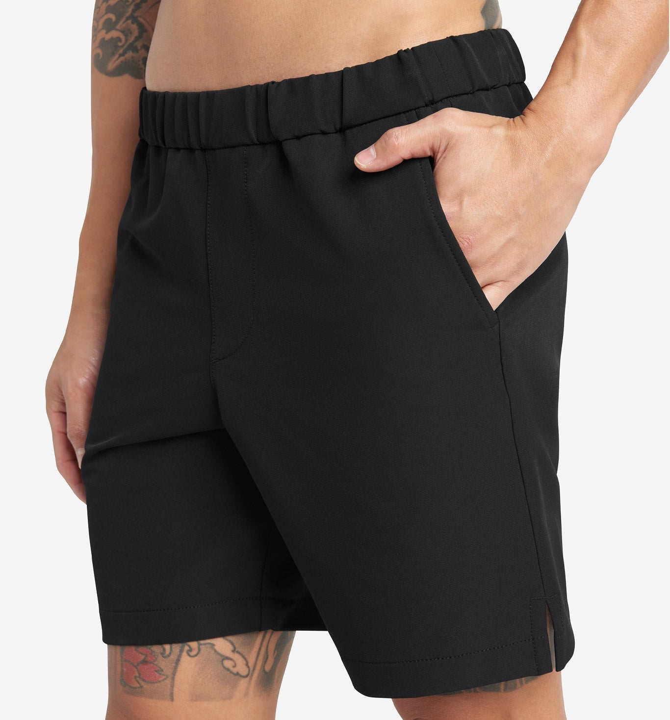 The Stretch Poly Twill Shorts prioritize comfort and practicality, featuring a soft, stretchable fabric with an elastic waist. Equipped with zippered pockets for secure storage, these shorts blend functional design with casual style.