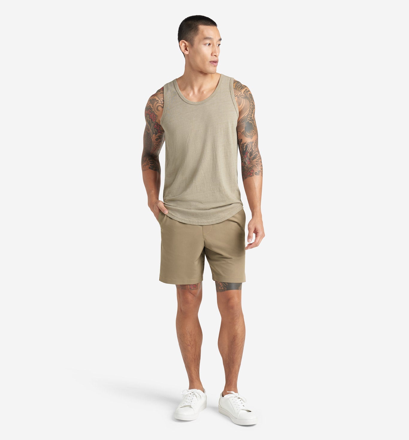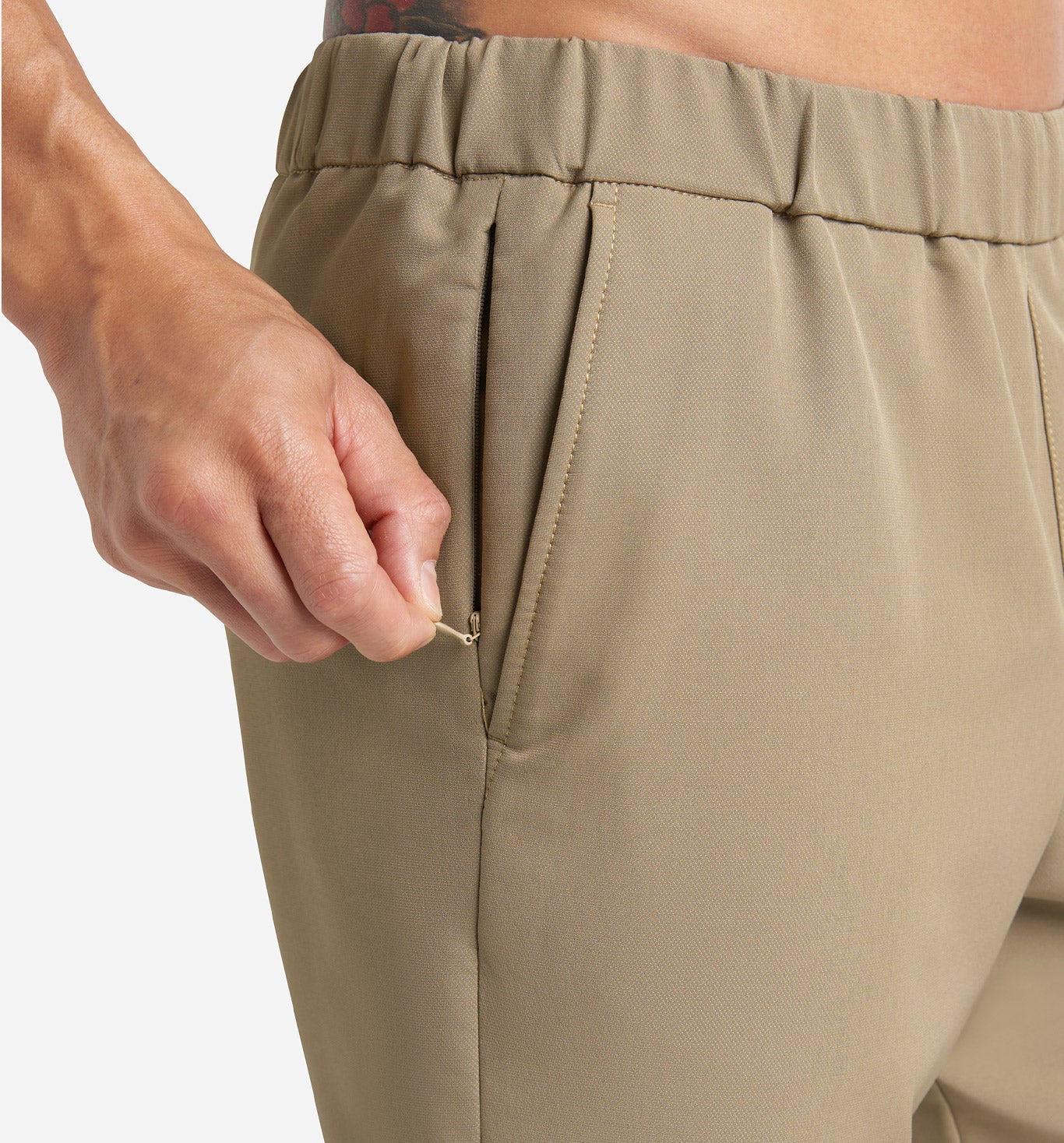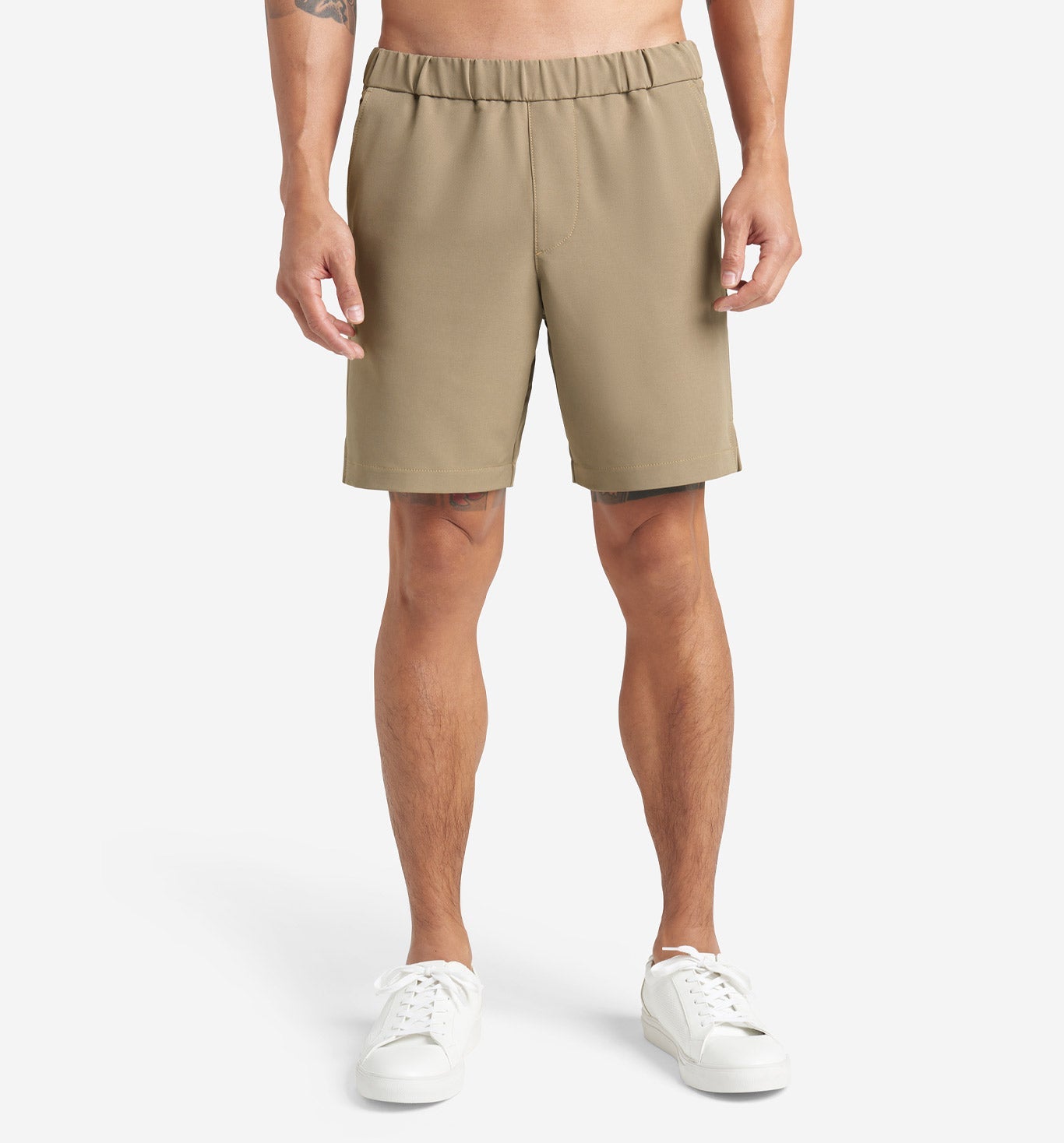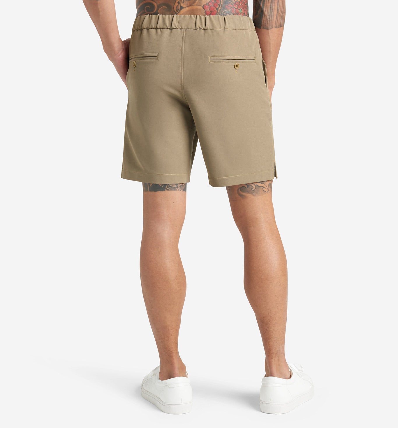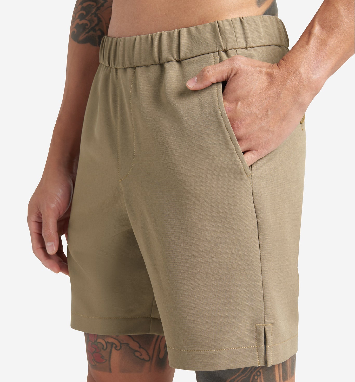 The Stretch Poly Twill Shorts prioritize comfort and practicality, featuring a soft, stretchable fabric with an elastic waist. Equipped with zippered pockets for secure storage, these shorts blend functional design with casual style.