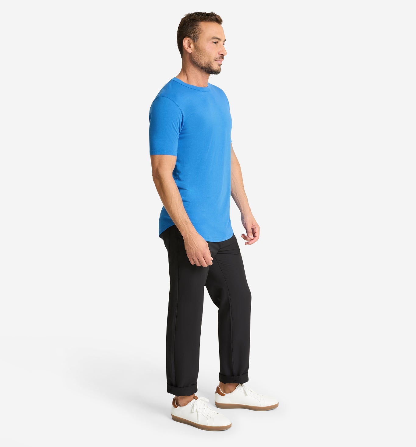 The Supima Scallop Crew is made from a superior blend of American-grown pima cotton and modal, offering unmatched softness and durability. This short-sleeve crew neck features a sleek scallop hem and is engineered to maintain its shape and rich color through regular wear.