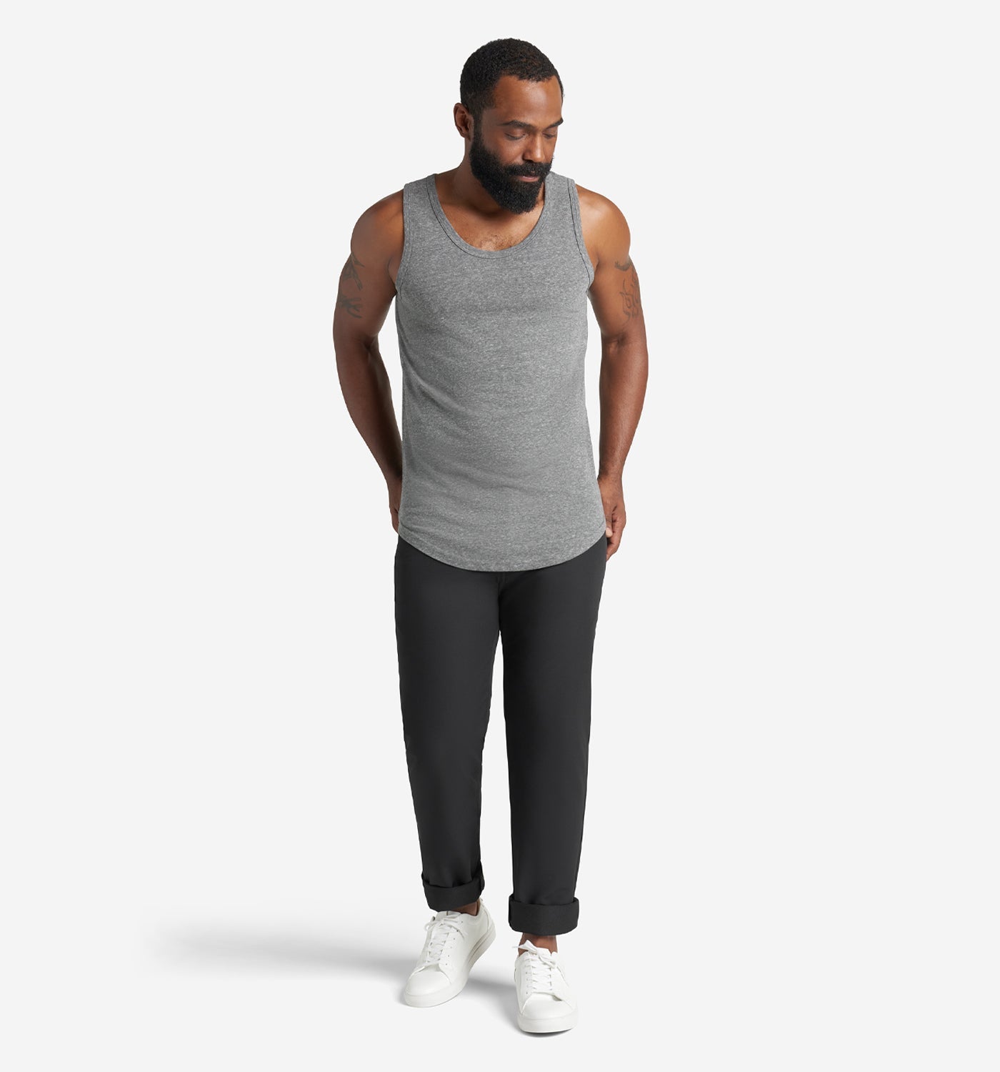 Tri-blend jersey in a tank top with our signature scallop hem. Made from our most durable jersey, while also being soft and lightweight - the blend of poly, cotton and rayon yarns give it its high-low color profile while always retaining its shape, wash after wash.
