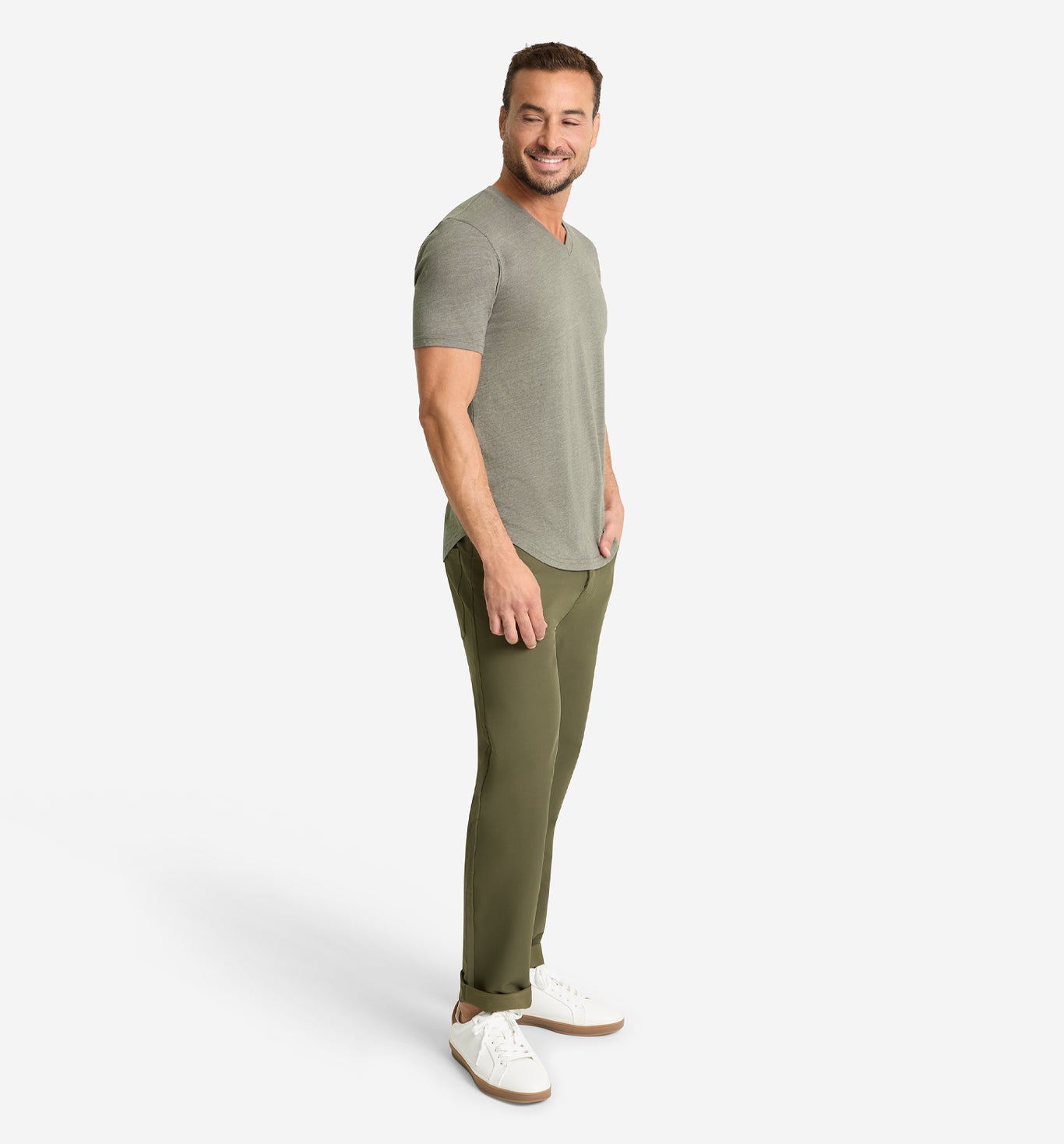The newly updated Tri-blend Scallop V is engineered for comfort and longevity, offering a sleek silhouette without contrast stitching. The blend of poly, cotton, and rayon yarns ensures the garment retains its shape and color, ideal for versatile styling.