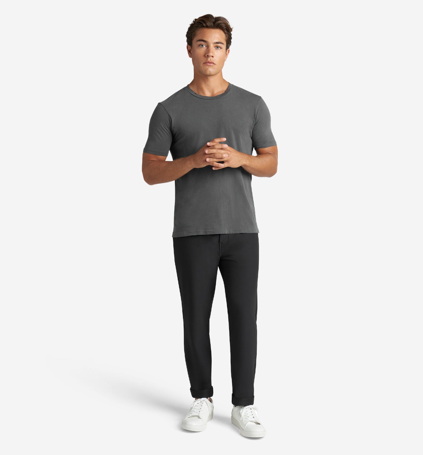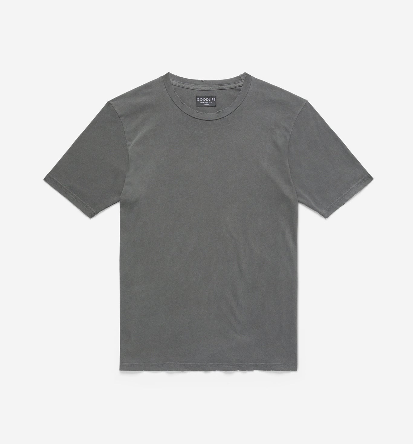Our newest t-shirt style in a brand new fabric. A lightweight, 100% cotton jersey, pigment dyed for a washed and worn in look, including hand distressing at the collar, sleeves and hem. Our classic crew t-shirt but with a vintage twist. As you wash and wear it the fabric will get softer and small rips on the collar and hems will continue to open.