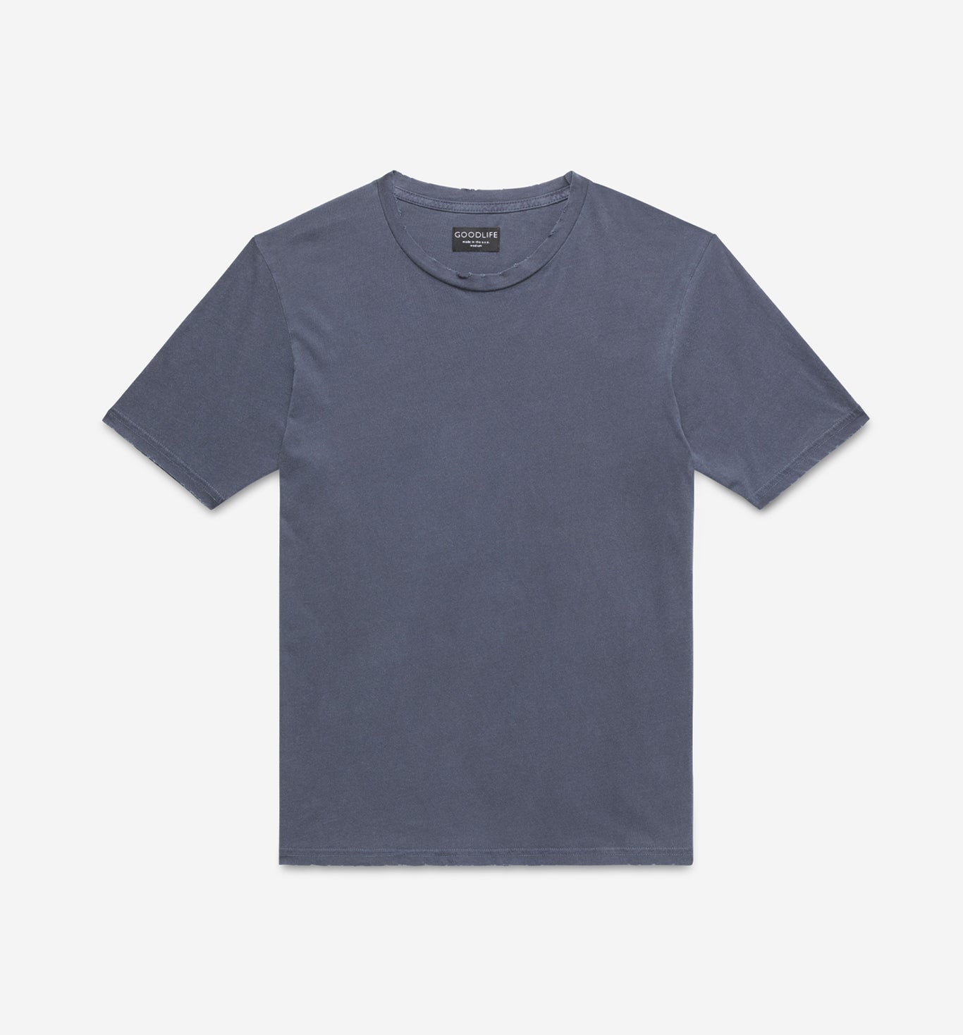 Our newest t-shirt style in a brand new fabric. A lightweight, 100% cotton jersey, pigment dyed for a washed and worn in look, including hand distressing at the collar, sleeves and hem. Our classic crew t-shirt but with a vintage twist. As you wash and wear it the fabric will get softer and small rips on the collar and hems will continue to open.