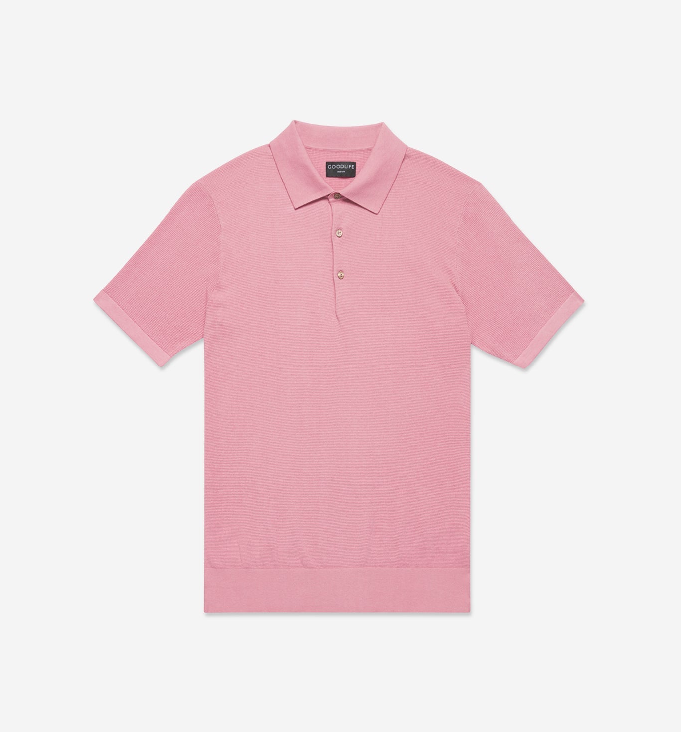 Discover the refined feel of our Short Sleeve Mini Waffle Knit Polo, showcasing Goodlife’s exceptional fit in a versatile design. This polo features a distinctive mini waffle knit fabric, enhanced with ribbed trim at the sleeves, showcasing an impeccable blend of casual elegance and comfort.
